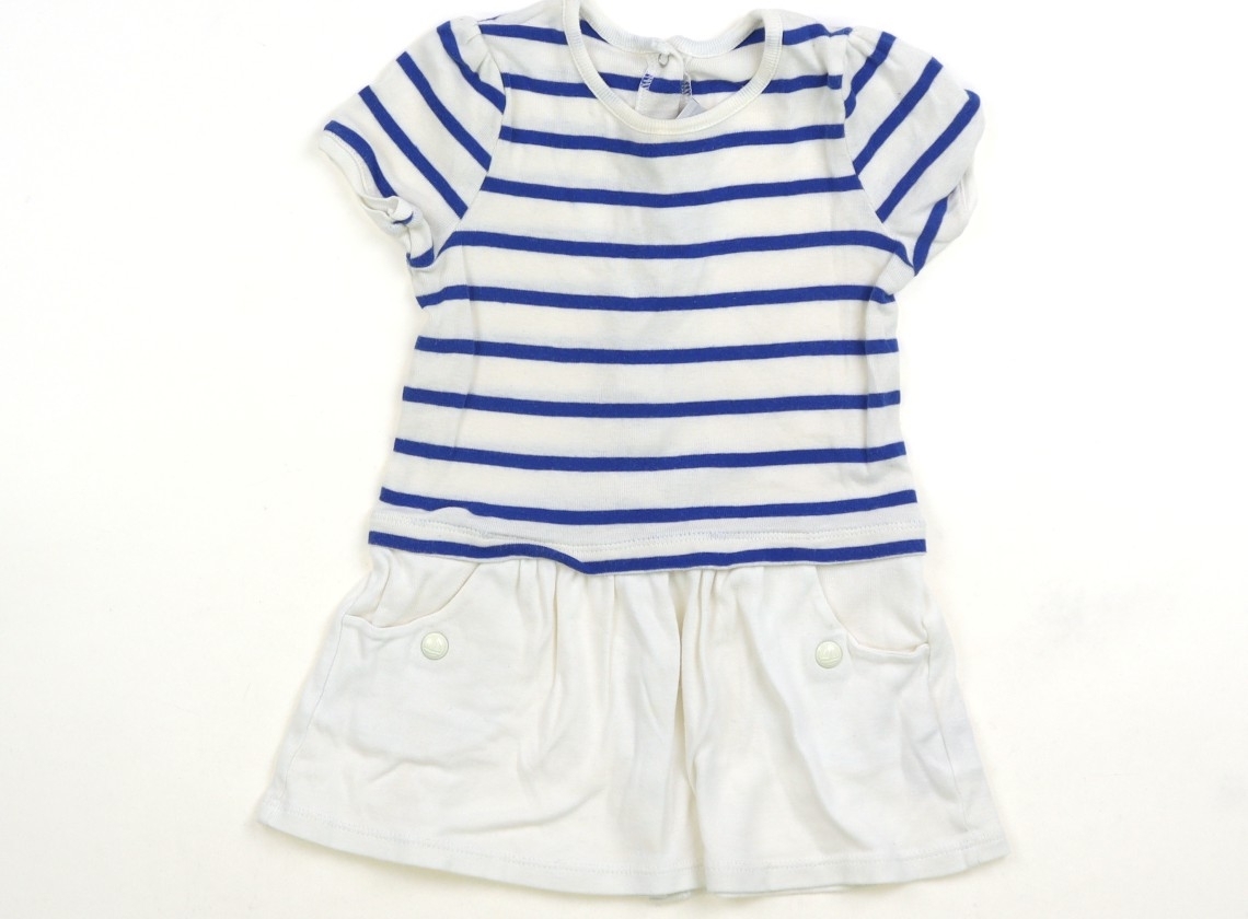 カットソー素材。実際のサイズ表記は74cmです。後身頃に、5mmほどの黒い汚れがあります。全体に色あせ・毛羽立ちがありますが、普段使いにいかがでしょうか。