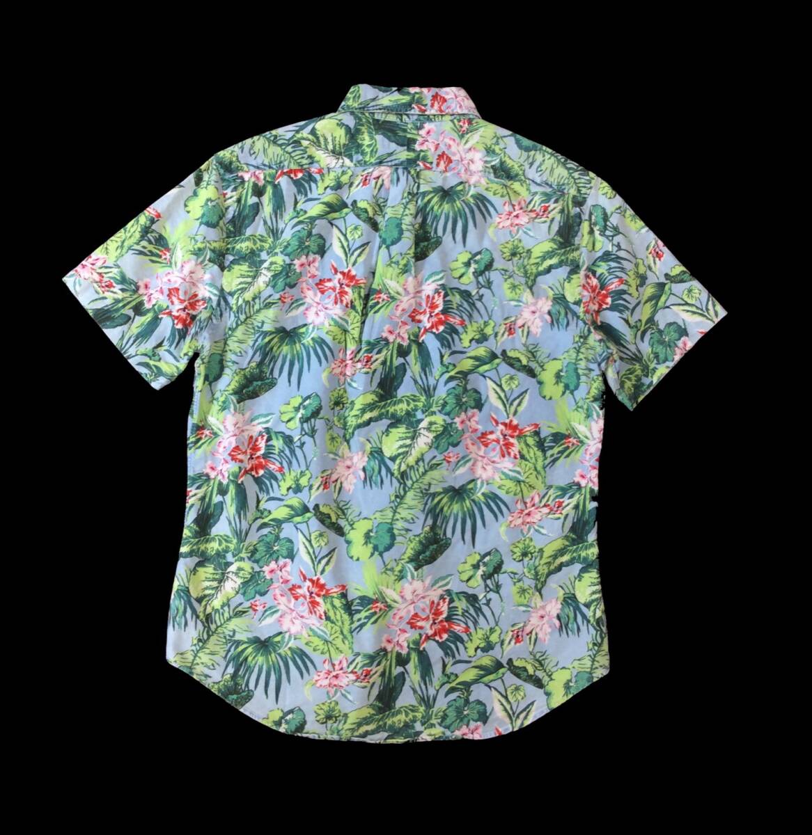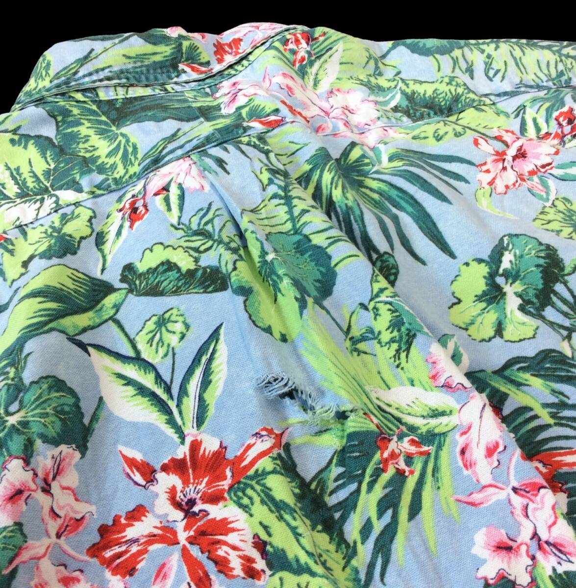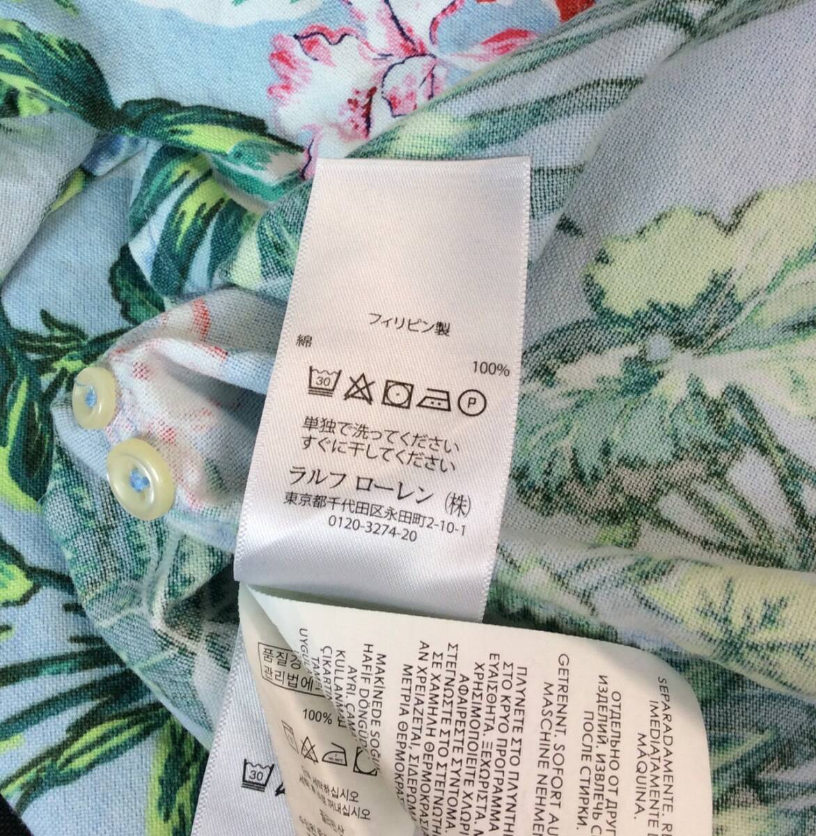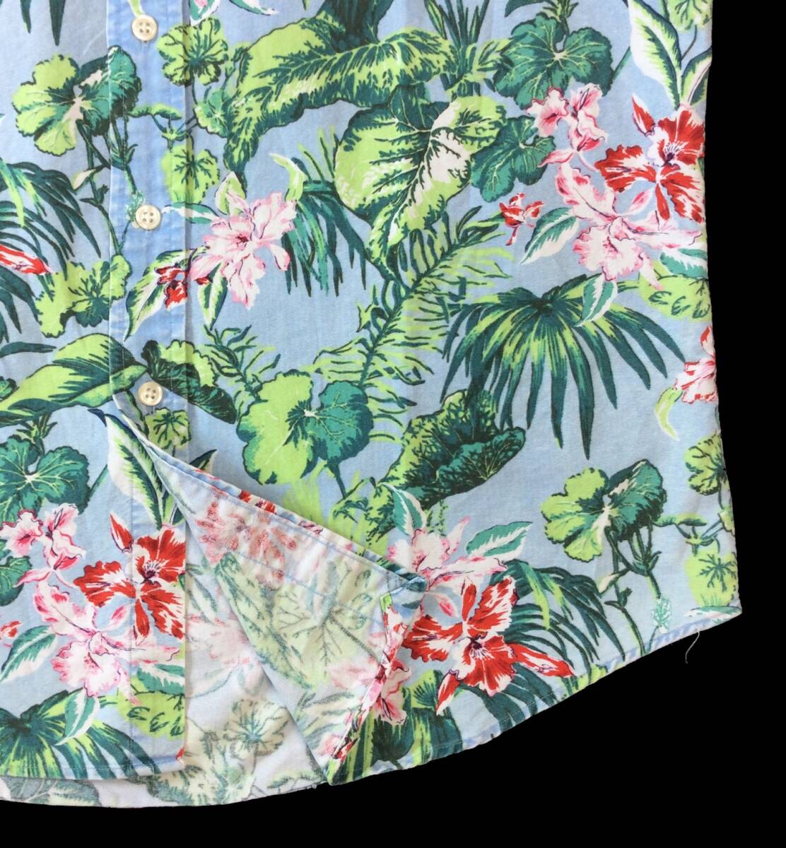 RALPH LAUREN ラルフローレン 花柄 半袖 シャツ アロハシャツ ハワイアンシャツ ボタンダウン SLIM FIT 水色系 メンズ L