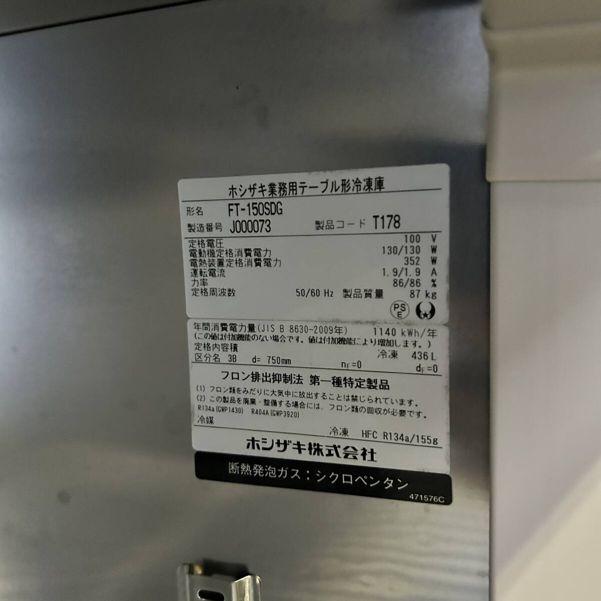 CH6★ホシザキ★ 2019年製 台下冷凍庫 テーブル型冷凍庫 FT-150SDG 店舗用 業務用 厨房用