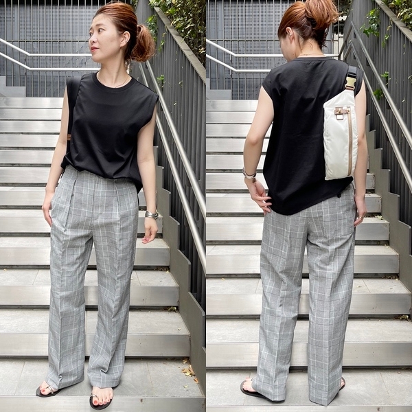 装いを華やかにしてくれるオリジナルチェックでお作りしたワンタックパンツ。 ドライタッチで着心地の良い麻混素材を起用し、裾に向かって緩やかに細くなっていく綺麗シルエットが魅力のテーパードデザイン。 ナチュラルな風合いなので、シンプルなトップスに合わせるだけで、トレンドライクなスタイリングが叶うアイテムです。