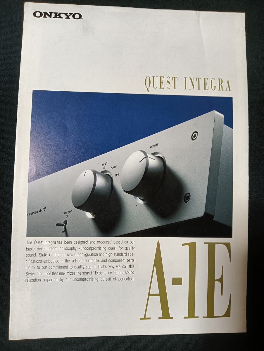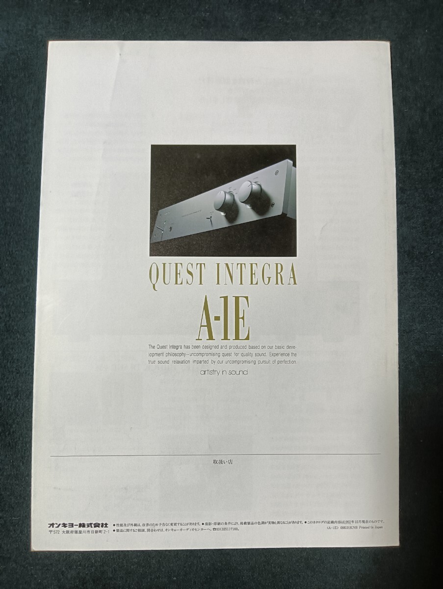 オンキョー 1992年10月のプリメインアンプ QUEST INTEGRA A-1Eカタログ 表裏表紙合わせて 全6頁になります。