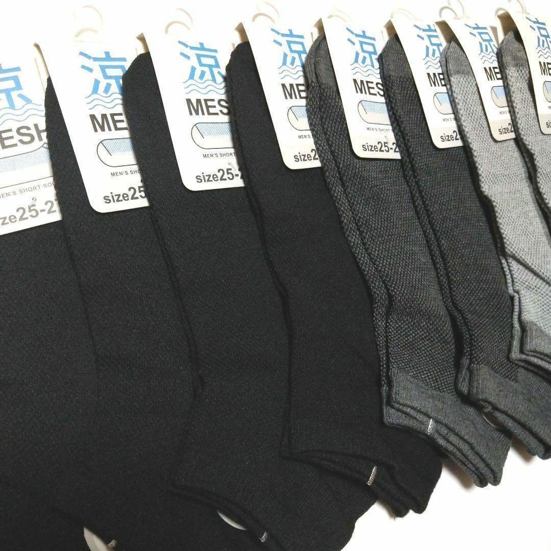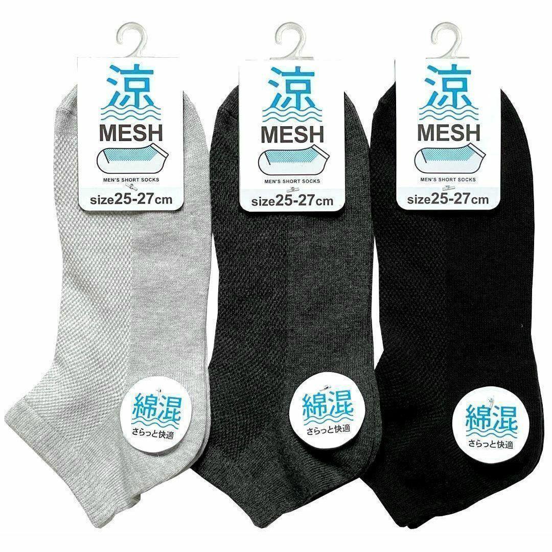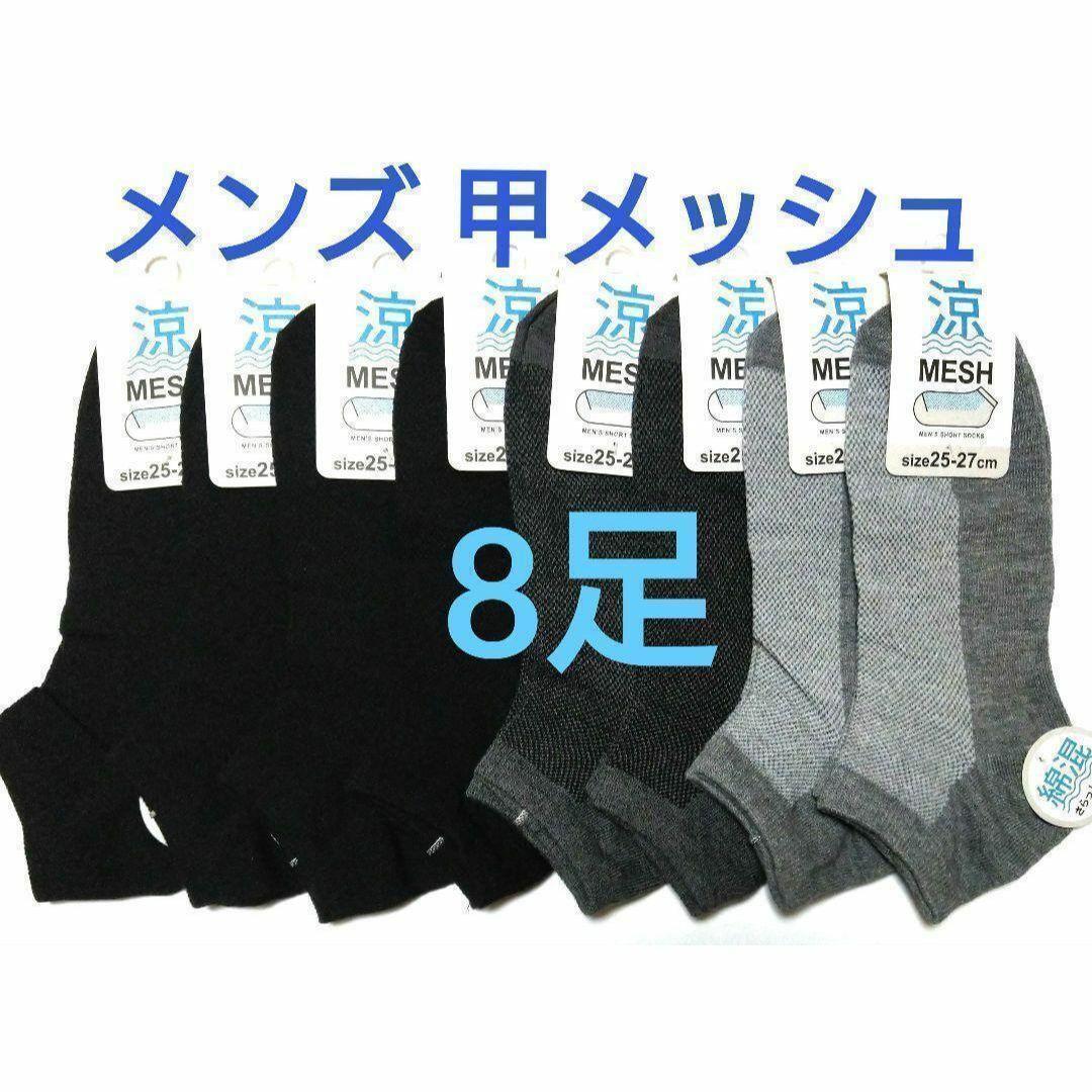 無地メンズ綿混ショートソックス ★甲メッシュタイプ★くるぶし丈8足セット