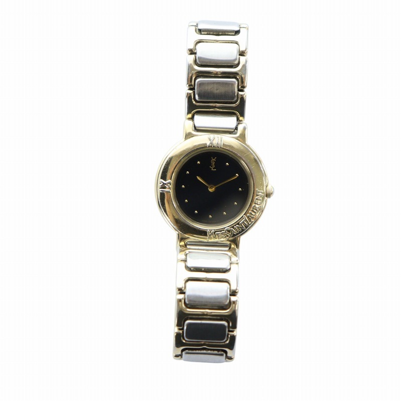 イヴサンローラン YVES SAINT LAURENT 腕時計 ウォッチ クォーツ ローマン 黒文字盤 ロゴ ゴールド色 2200-229789