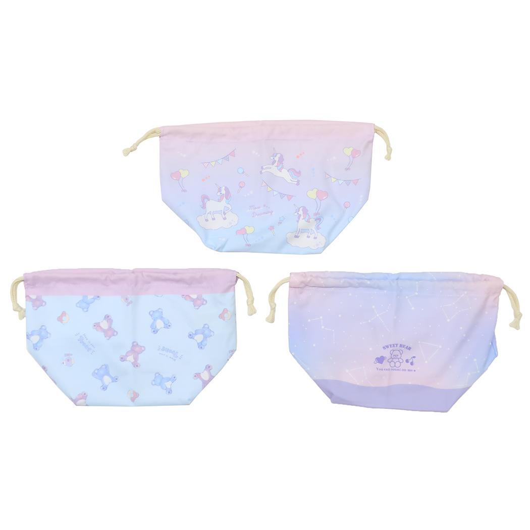 ランチ巾着 マチ付き巾着 3枚セット ゆめかわ 新入学 ニシオ 新学期準備雑貨 お弁当巾着 グッズ