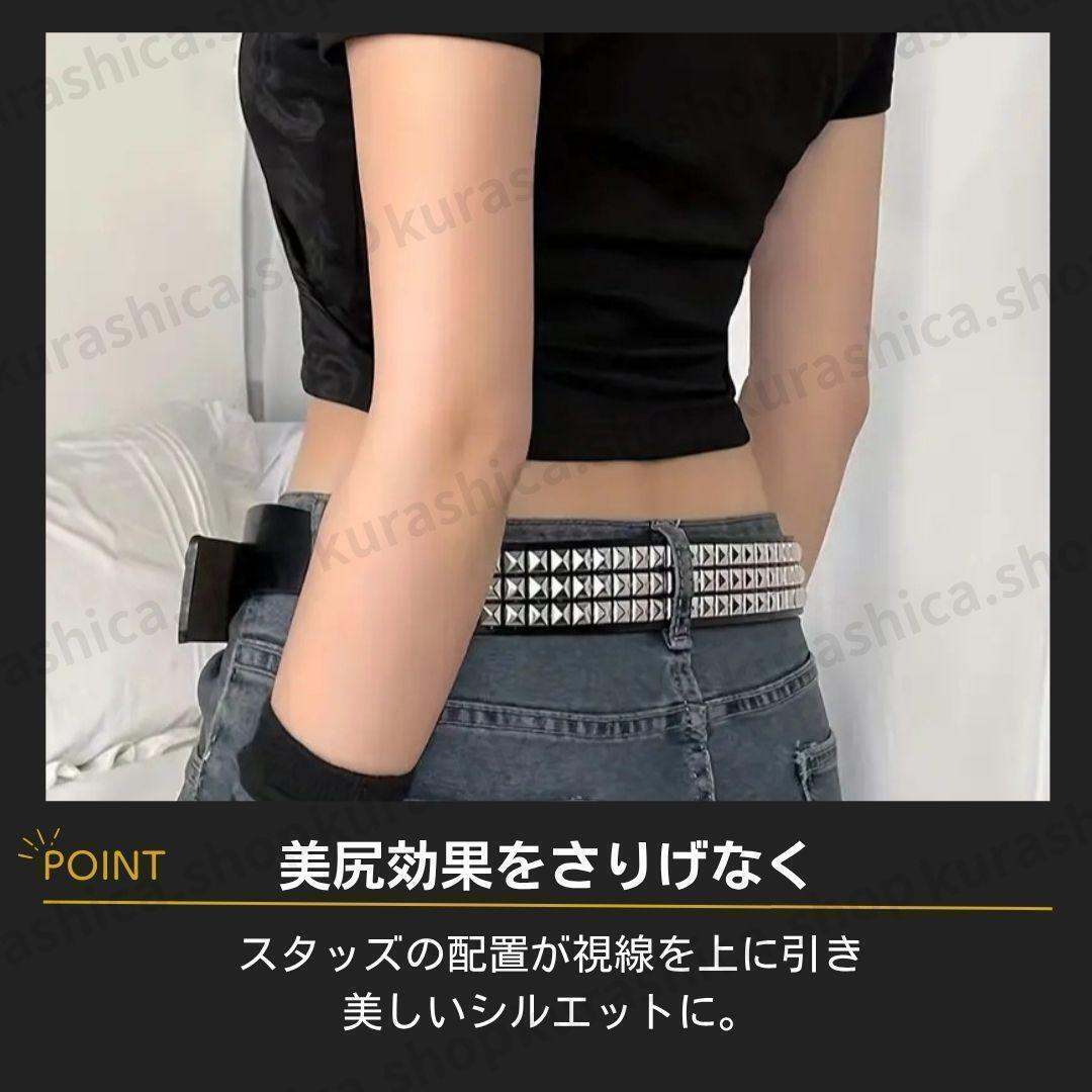 スタッズベルト 3連 ピラミッド パンク 古着 ウエスタン y2k ビンテージ バックル クラブ ブラック 黒 レザー 合皮 PUレザー 男女兼用 7