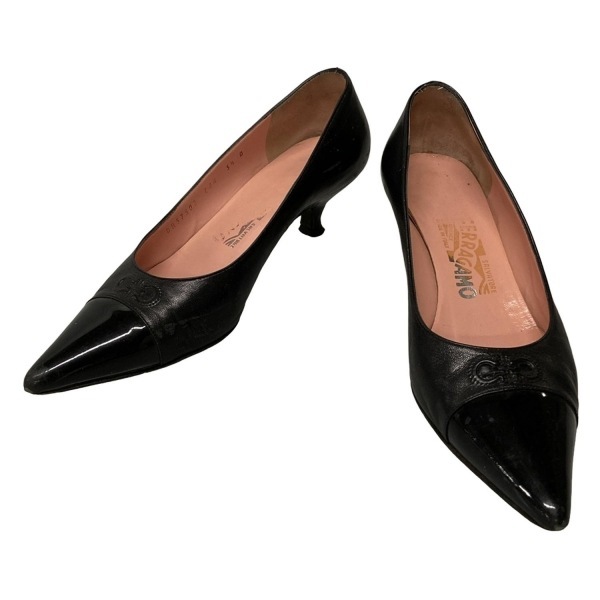 サルバトーレフェラガモ FERRAGAMO/SalvatoreFerragamo パンプス 5 1/2 D - レザー 黒 レディース ガンチーニ 靴