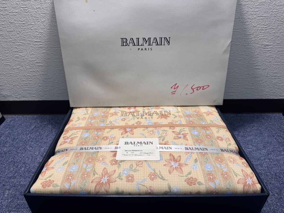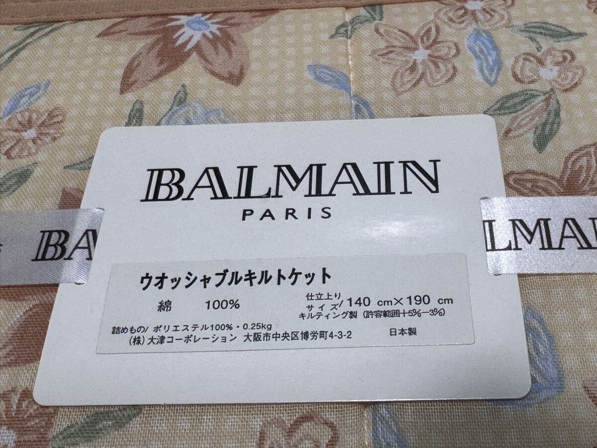 【87-5ミ】BALMAIN paris ウォッシャブルキルトケット シーツ 寝具 綿100% 140cm×190cm 保管品
