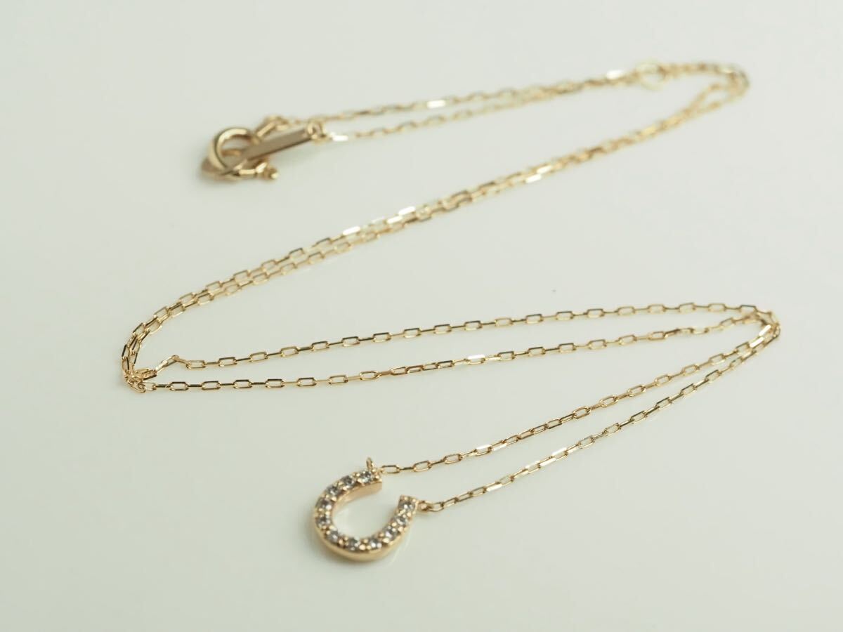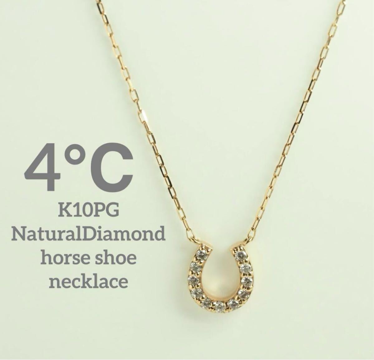 4℃☆ヨンドシー K10PG天然ダイヤモンドネックレス ホースシュー 馬蹄 ro