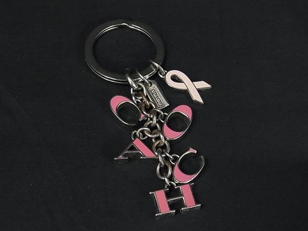 ■美品■ COACH コーチ キーホルダー キーリング チャーム レディース シルバー系×ピンク系 DG9057