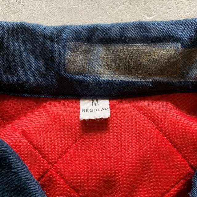 ★商品状態★ ・着用感があり、胸部に僅かな薄汚れ、ジップの取手に若干の反りが見られます。着用には支障のない程度となります。 ・古着慣れされている方でしたら問題無く着用していただける程度かと思います。 ★素材★ おそらく COTTON/POLYESTER 内装キルティング ★配色★ ネイビー ★サイズ表記★ M ・実寸を参考にして下さい。 ★実寸サイズ★ 肩幅46㎝ 身幅58㎝(脇下~脇下) 着丈60㎝(襟下~裾) 袖丈62㎝(肩~袖先) ・平置きにての採寸となります。 ・若干の誤差はご了承ください。 | ||||