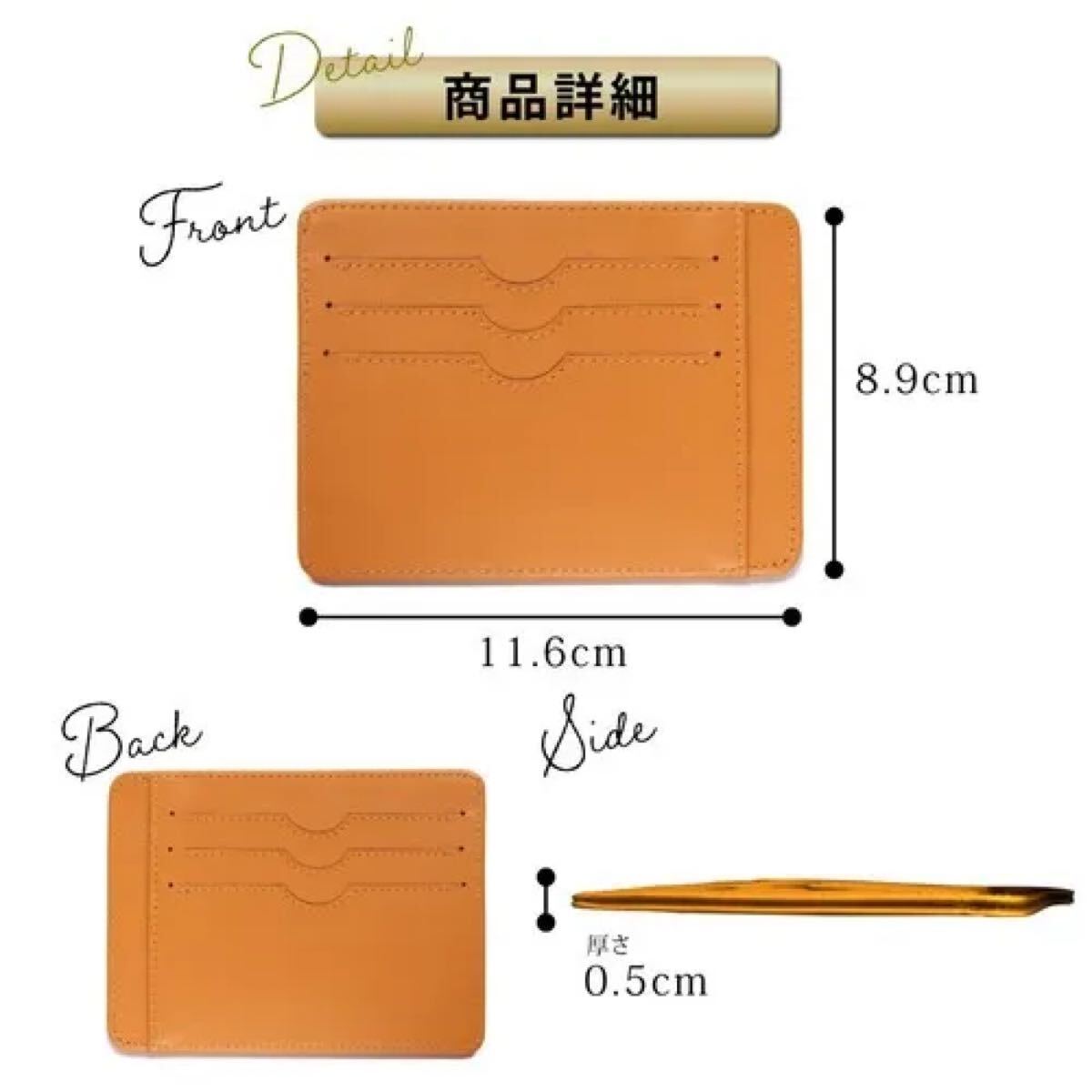 厚さ約5mmで中身を入れてもかなり薄いです!ジャケットやジーンズのポケットに入れても膨らまないのでスマートにお出かけが可能です。