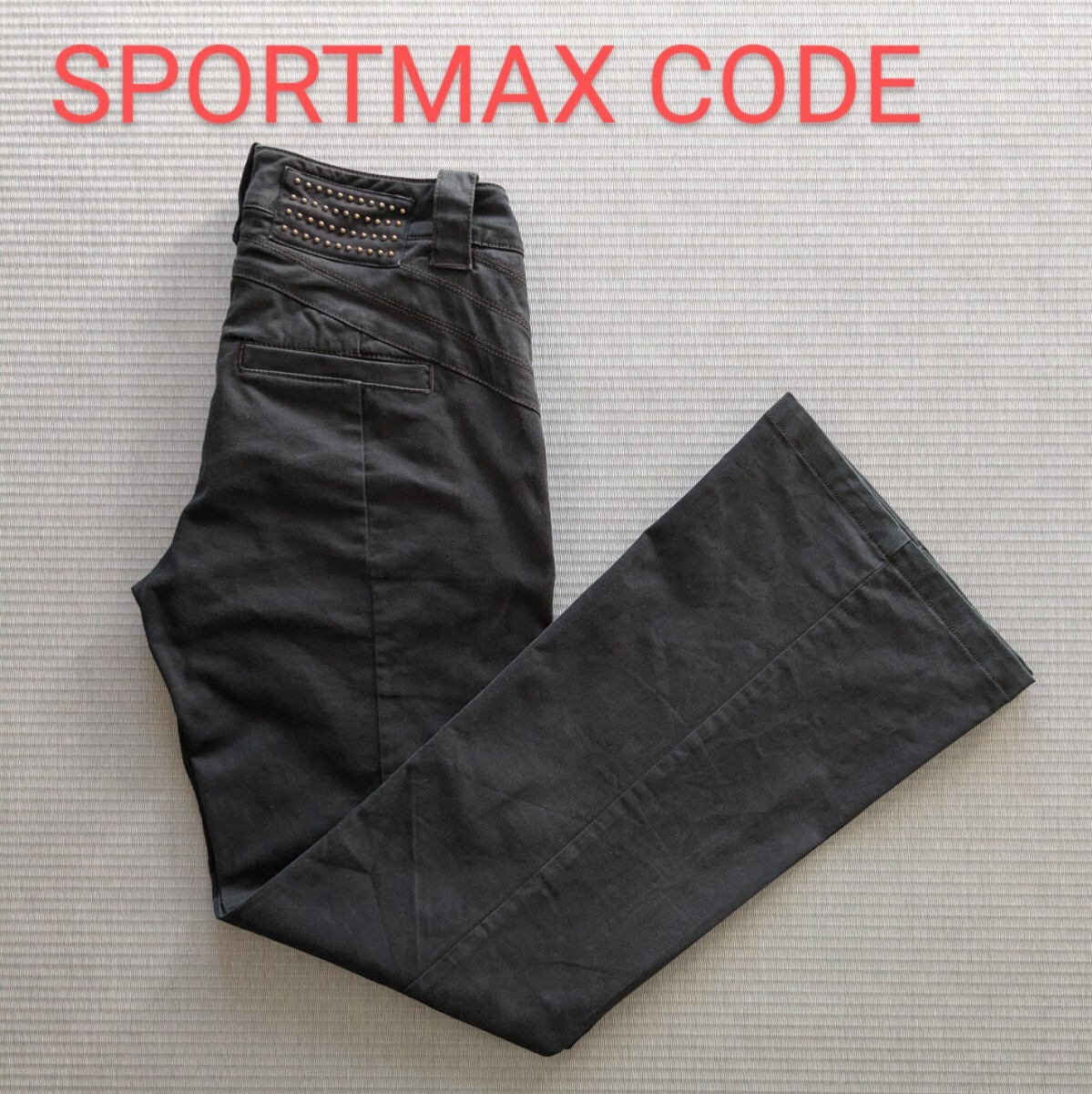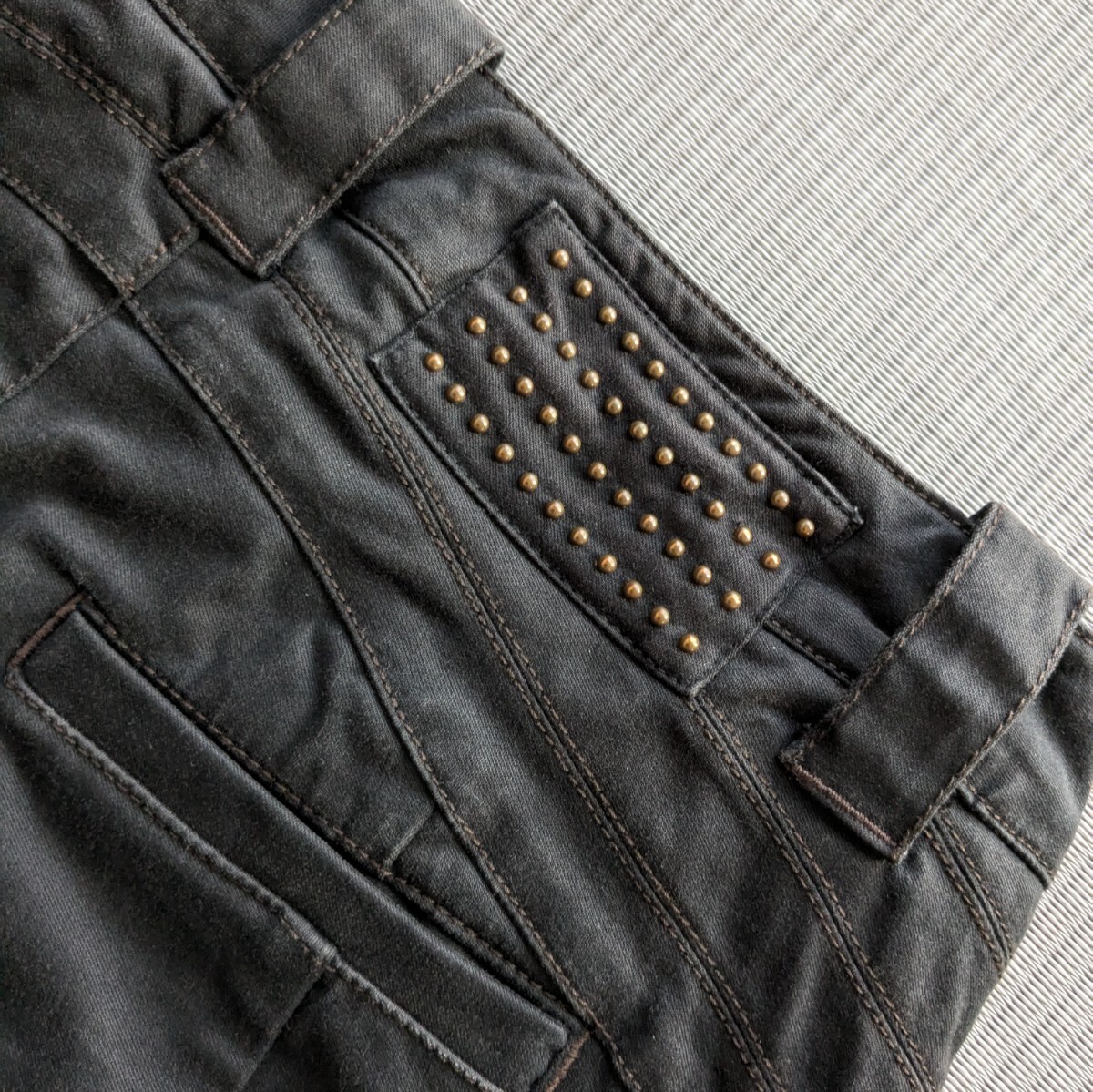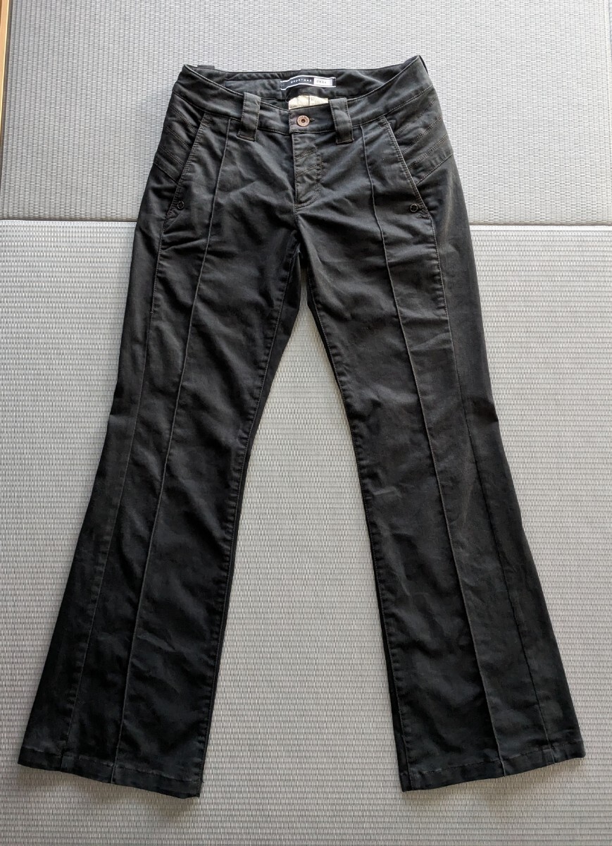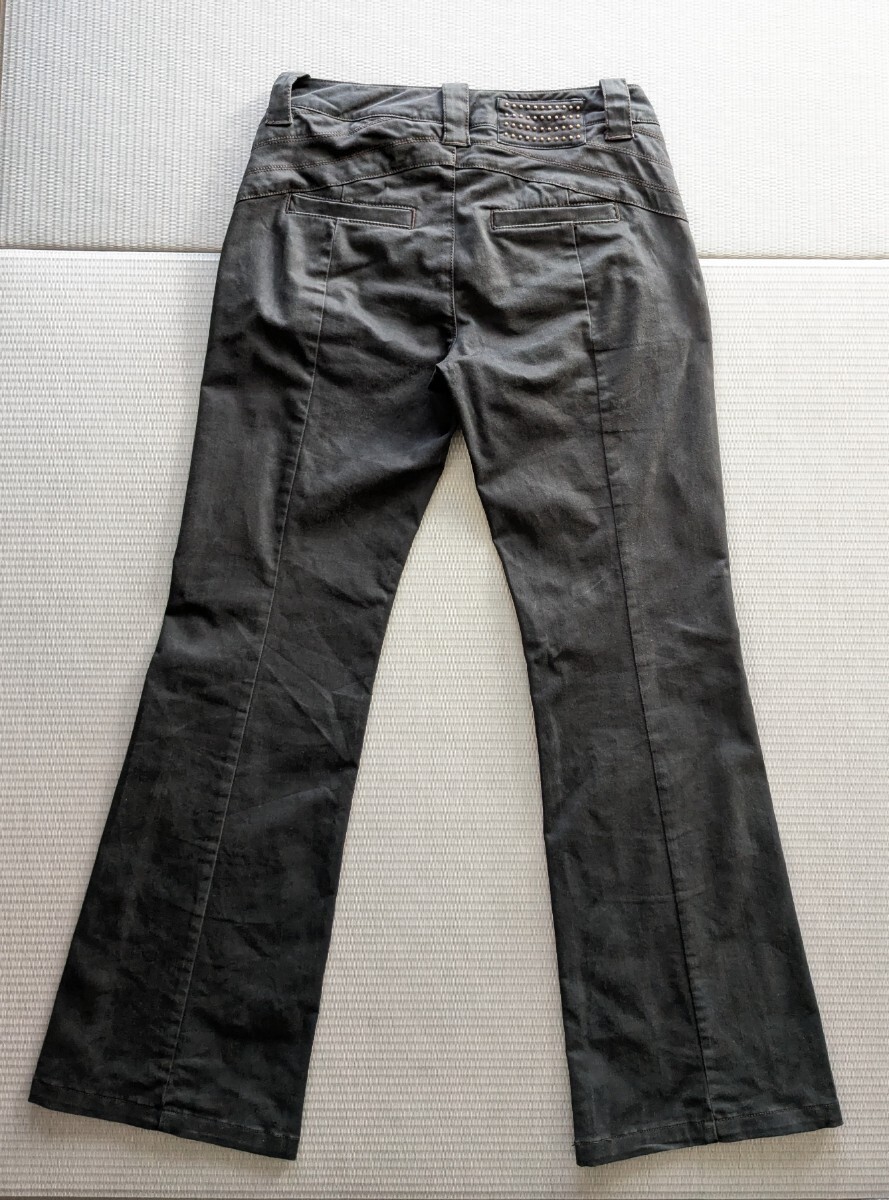⇒平置きで、ウエスト35cm、股上20cm、股下75cm、裾幅25cm