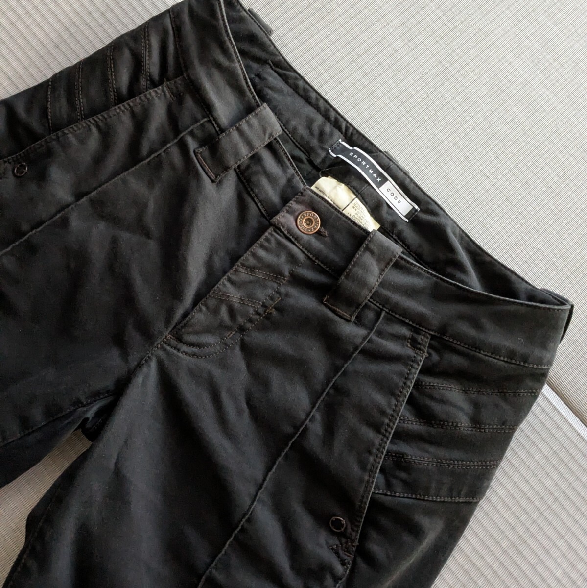 縦に切り替えが施された大変凝った作りのパンツです。