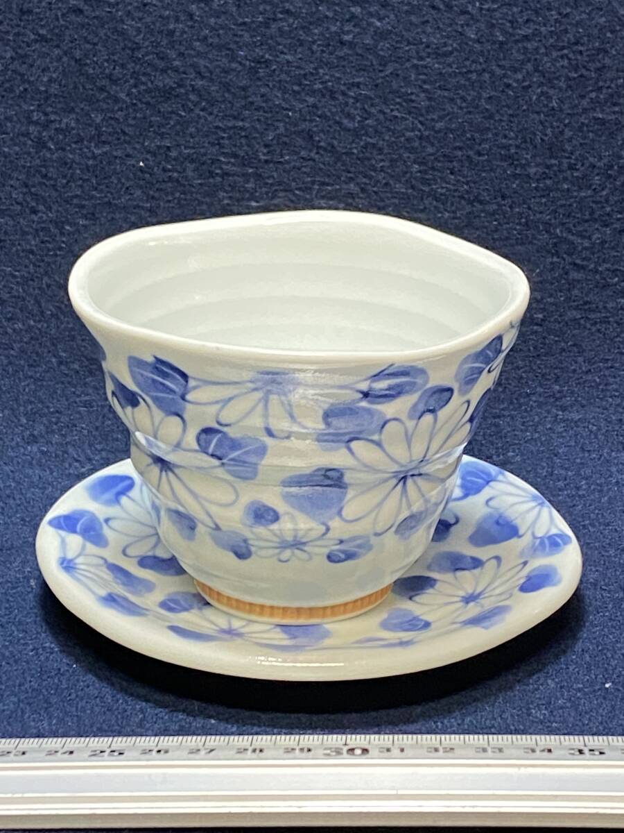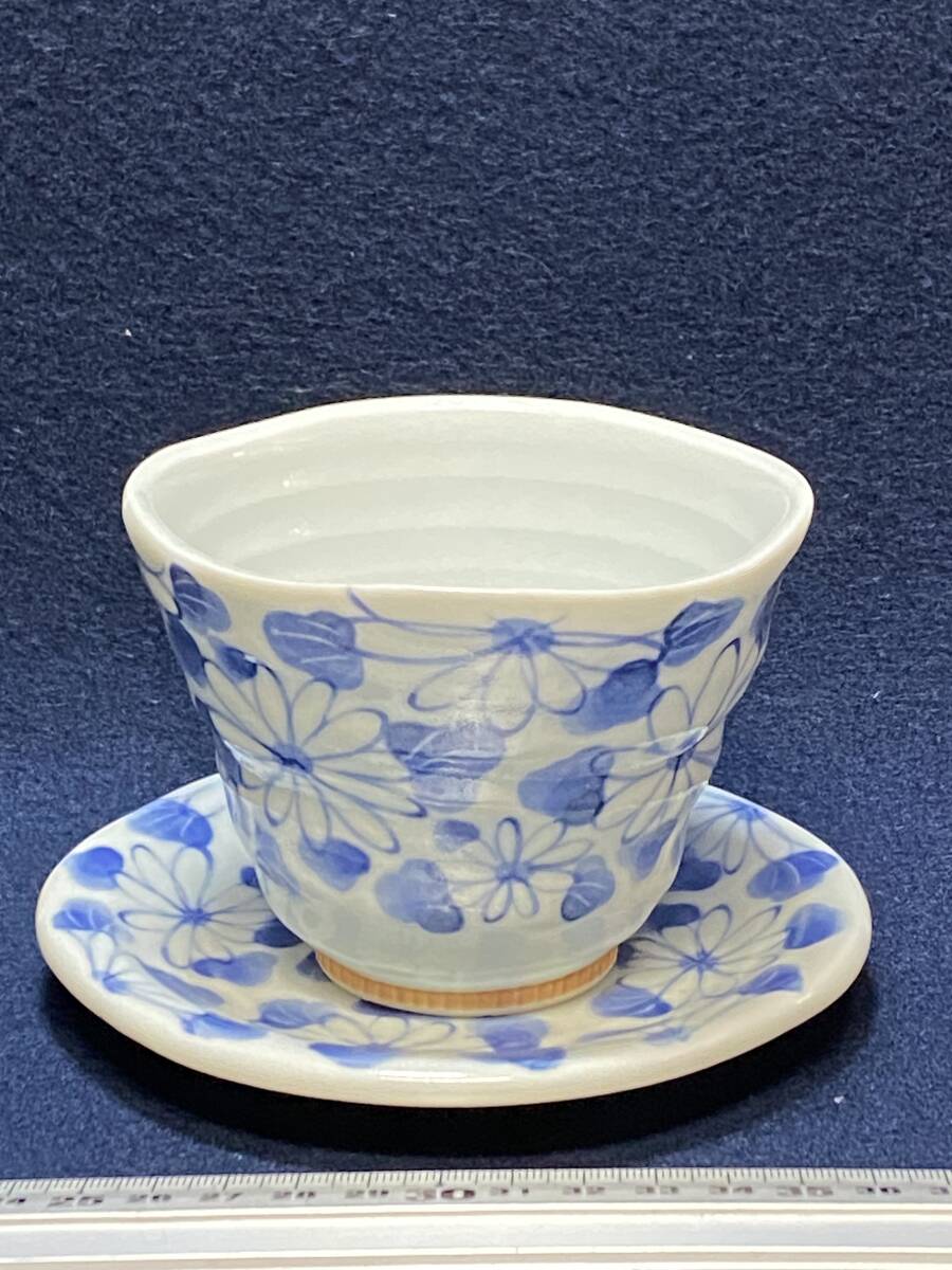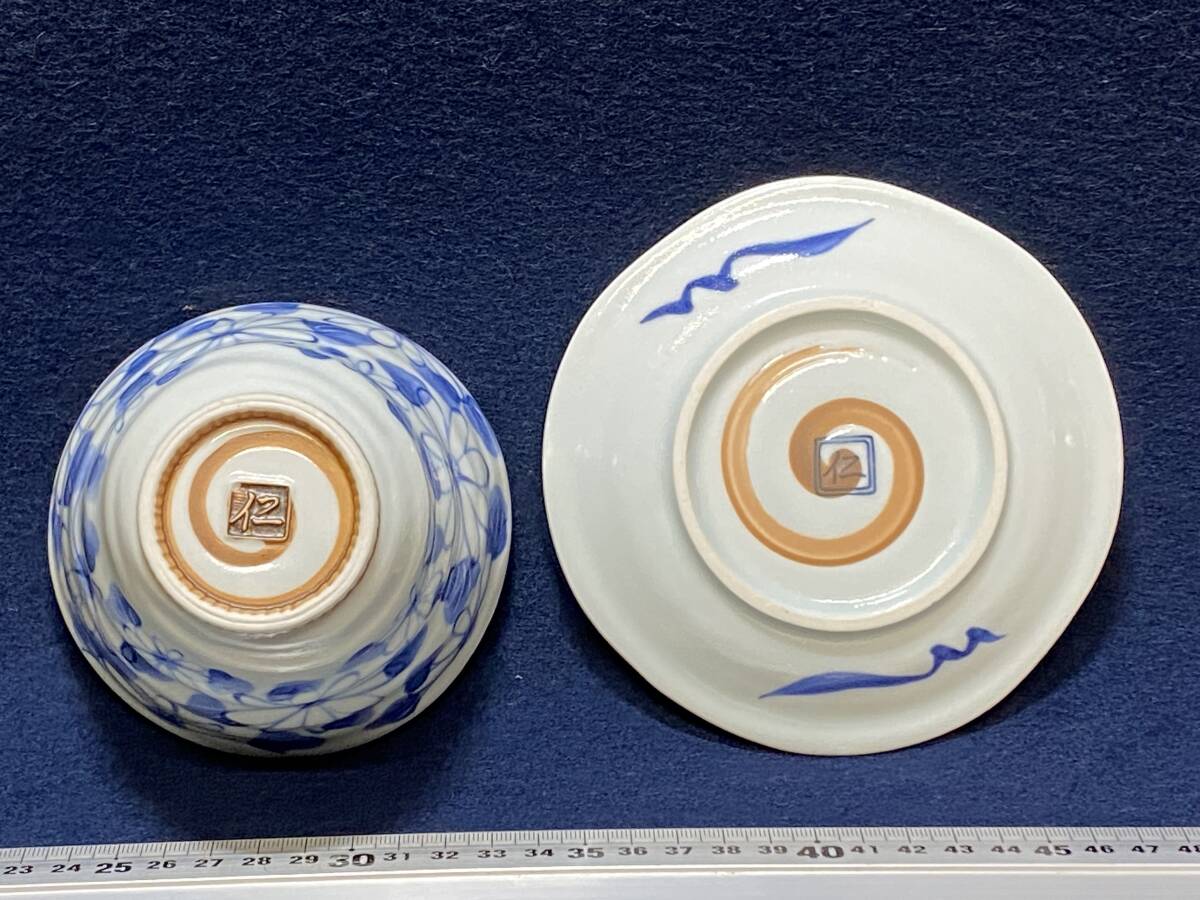 DS 美品 仁 在銘 有田焼 カップ&ソーサー 湯呑み 皿 マグカップ 陶器 和食器 コーヒー 紅茶 ウーロン茶 珈琲 白磁 青絵 花柄 植物柄 大き目