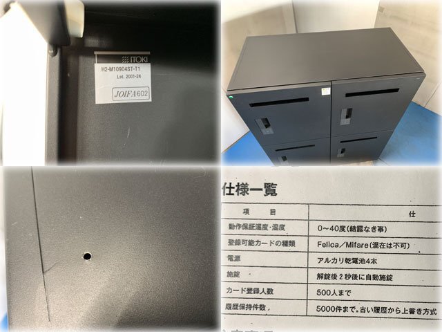イトーキ 4人用パーソナルロッカー H2-M10904ST-T1 出品いたします。 ■特徴■ ・4人用 ・スマートロック式 ・電源はアルカリ乾電池4本 ・説明書付 ※傷・汚れは写真をご確認ください。 ※写真に映る車輪付きの台は付属しませんので ご了承ください。 ※複数在庫ありますが同じ写真を使っての出品となります。 多少の状態の違いはご了承ください。 こちらの商品は1台ずつの出品となります。 まとめて購入希望の場合は、 落札後に取引メッセージよりご連絡ください。 在庫につきましては 店舗でも併売していますので変動があります。 ご希望の場合は入札前に質問よりご連絡お願いします。 ■発送■ アート家財おまかせ便での発送となります。 送料軽減のため店頭引き渡しも大歓迎です。 ■---------------------------- 長野リサイクルセンター3号店では 多くのオフィス家具を取り扱っています! オフィス立ち上げのご相談も 行っておりますので ぜひこの機会にご覧ください!! ---------------------------■ |