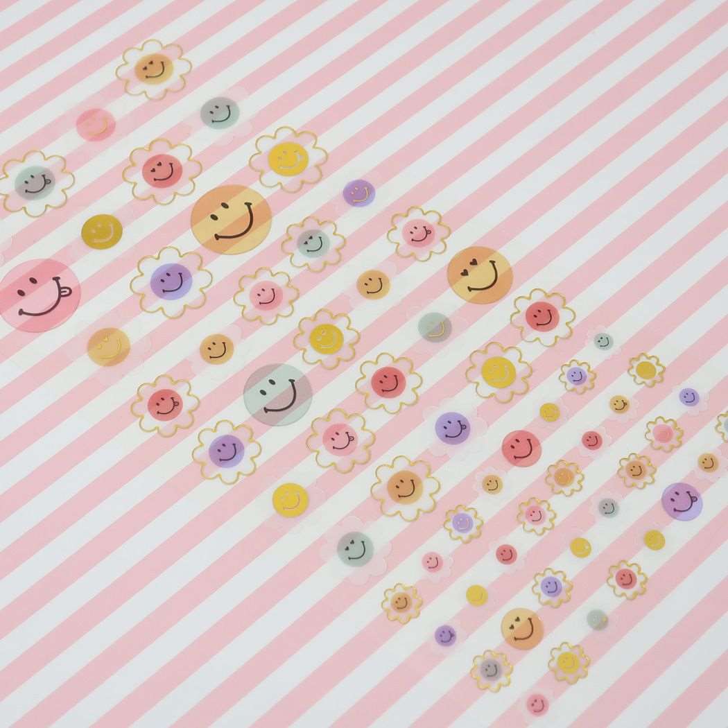 Smile petit collectionシリーズ 見て楽しめるデコレーションシールシリーズこちらはかわいい[シールシート]手帳や日記、お手紙に貼るなどいろいろお使いいただけます。かわいいシールいろいろあるのでお気に入りを集めてくださいサイズ:約95x205mm素材:クリアシール紙/金箔押し加工