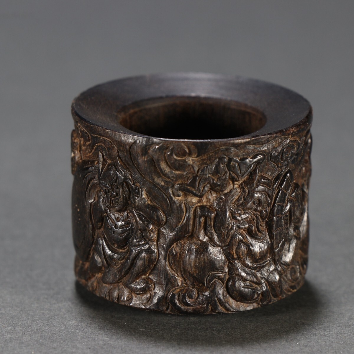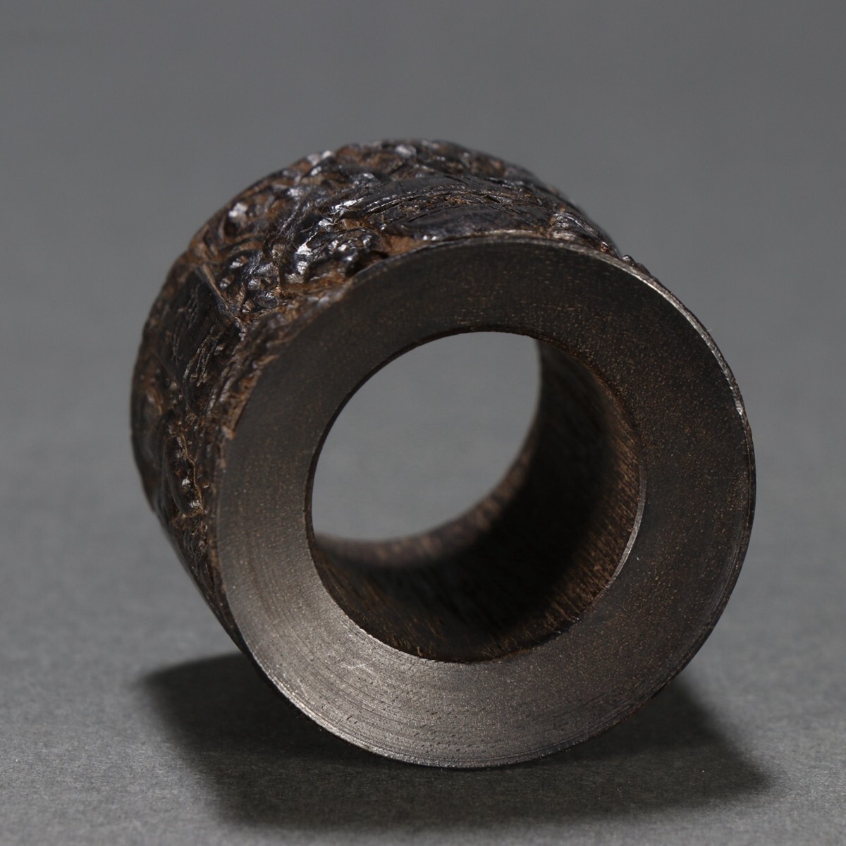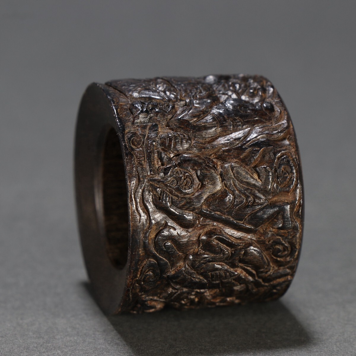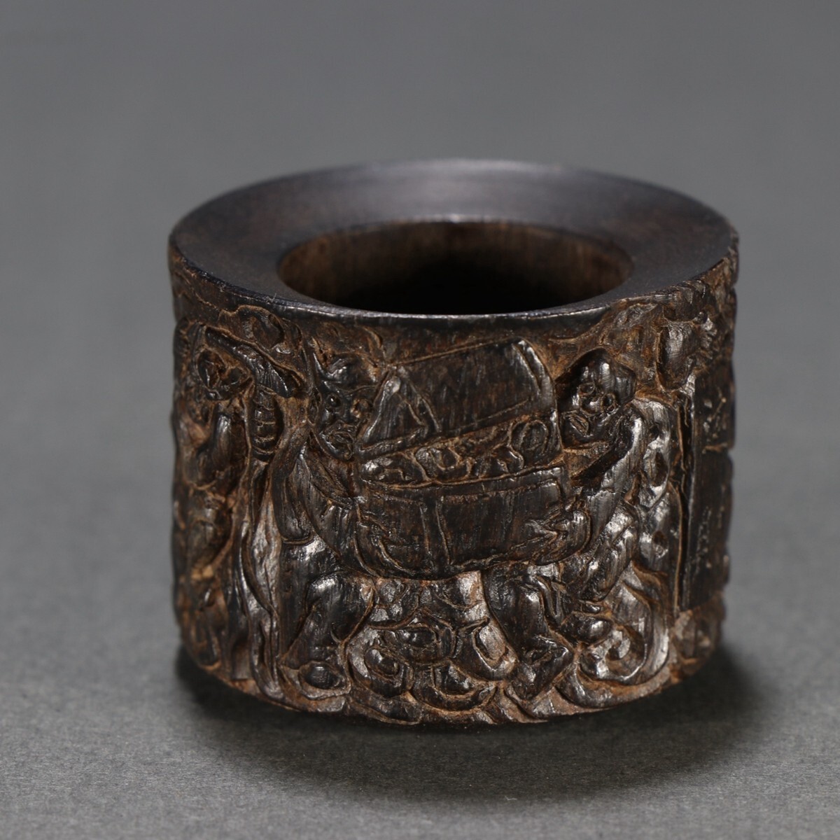 清時代 老沈香木彫 運財 板指 非常に良い香り【仁】極細工 手彫り 裝身具 古賞物 中国古美術 蔵出