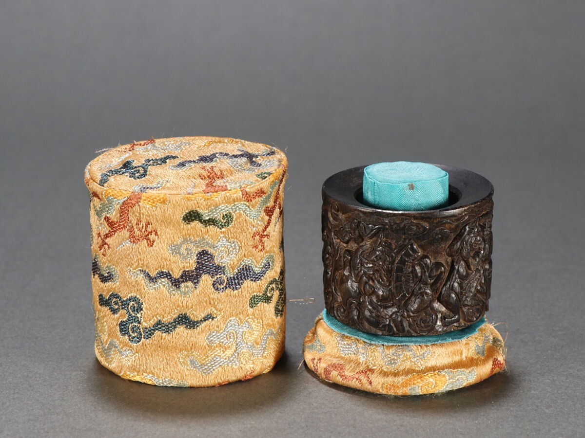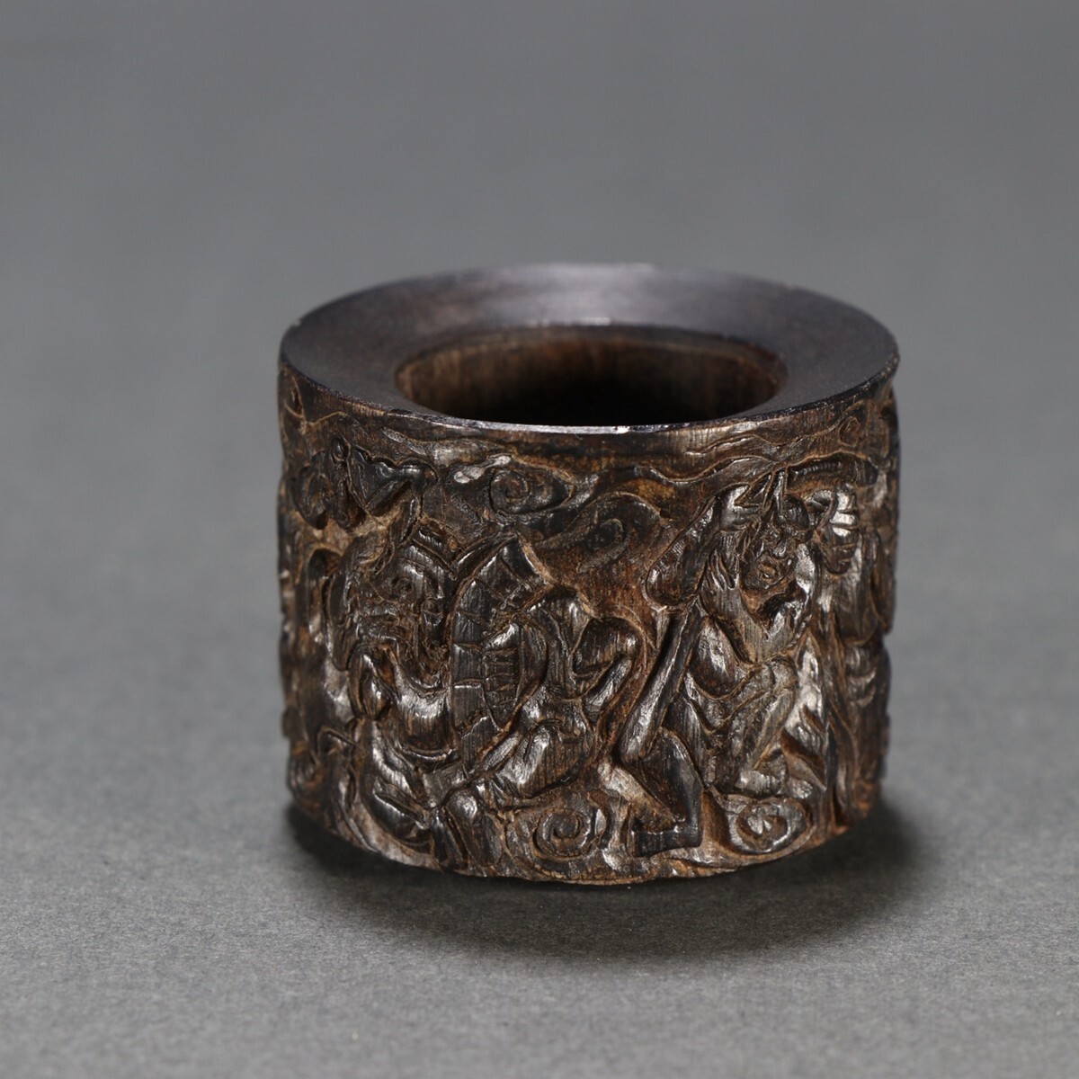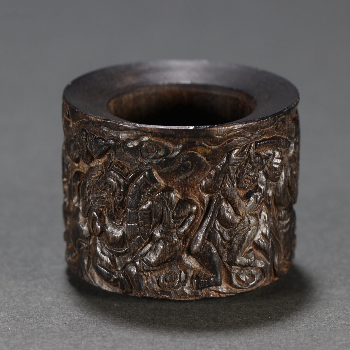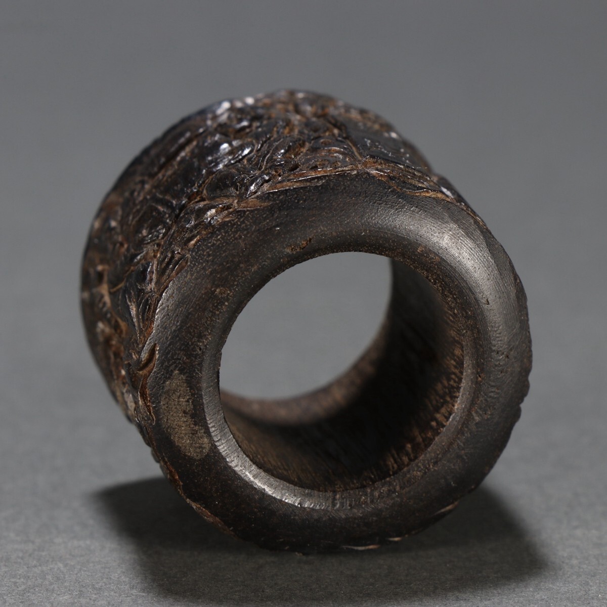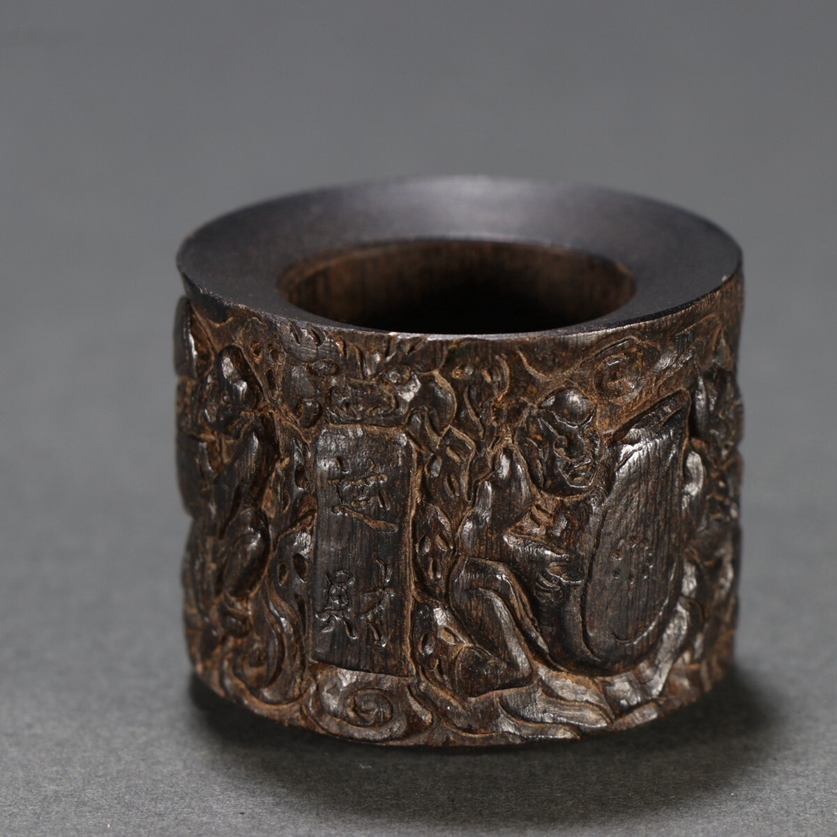 清時代 老沈香木彫 運財 板指 非常に良い香り【仁】極細工 手彫り 裝身具 古賞物 中国古美術 蔵出