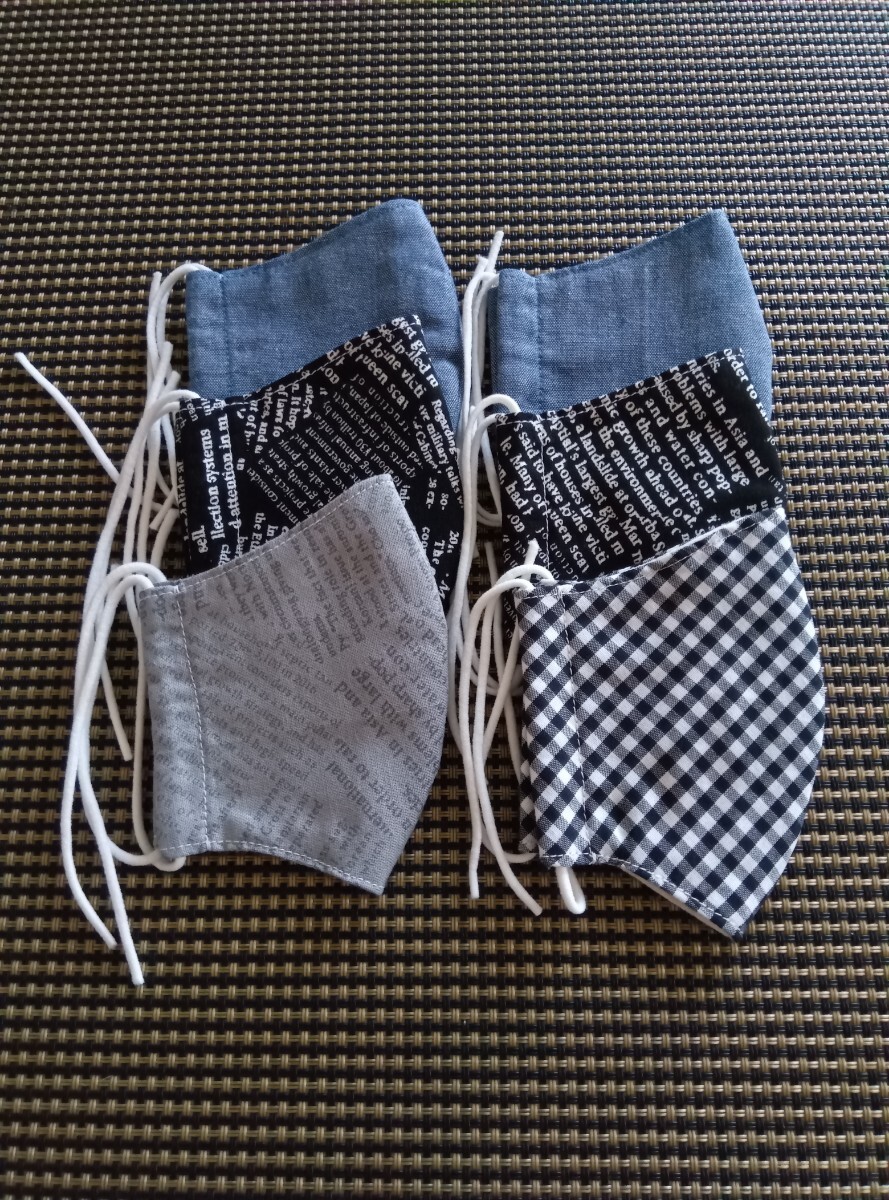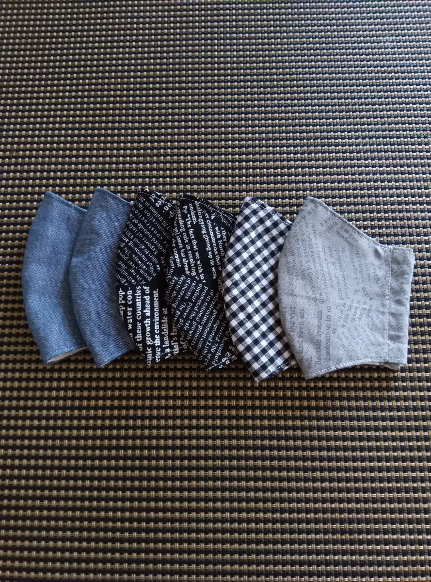 園児用立体マスク6枚入り/英字(ライトグレー1枚・ブラック2枚)チェック(ブラック1枚)デニム(2枚)ハンドメイド★送料無料★