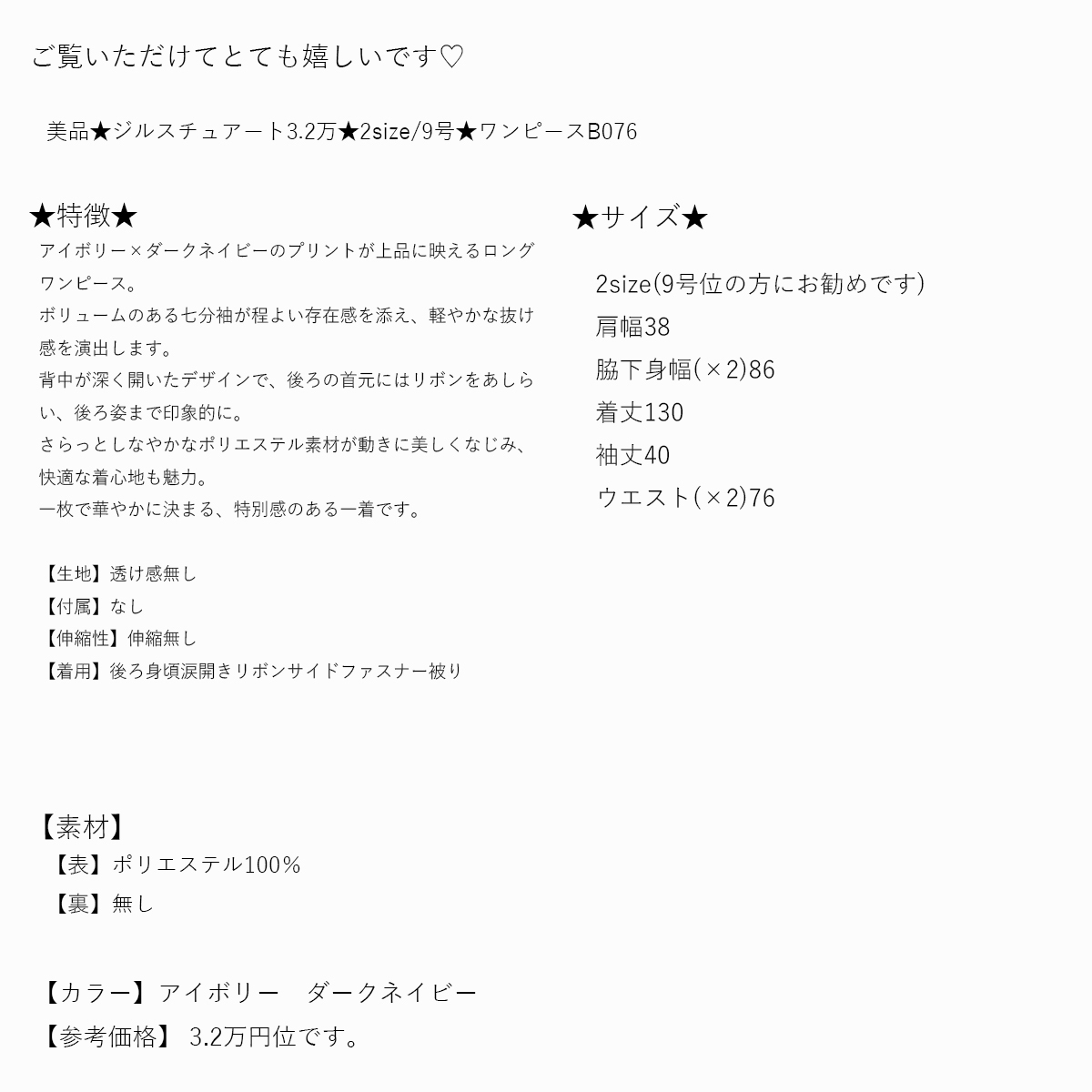 美品★ジルスチュアート3.2万★2size/9号★ワンピースB076