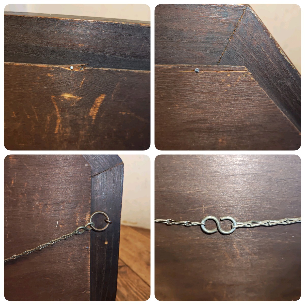 背板に傷や汚れ、擦れ、割れ、欠け、歪み等があり、新しい釘で補修されているところがあります。