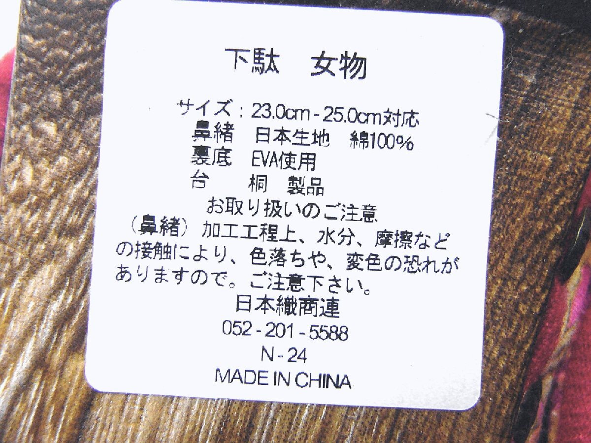 タグによりますと下駄の台は桐で鼻緒は日本製のお品でポリエスエルになります。<