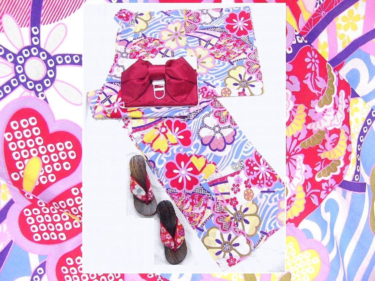 アウトレット 少々難あり品 女性用 浴衣3点セット(浴衣+帯+下駄) 801 未使用品