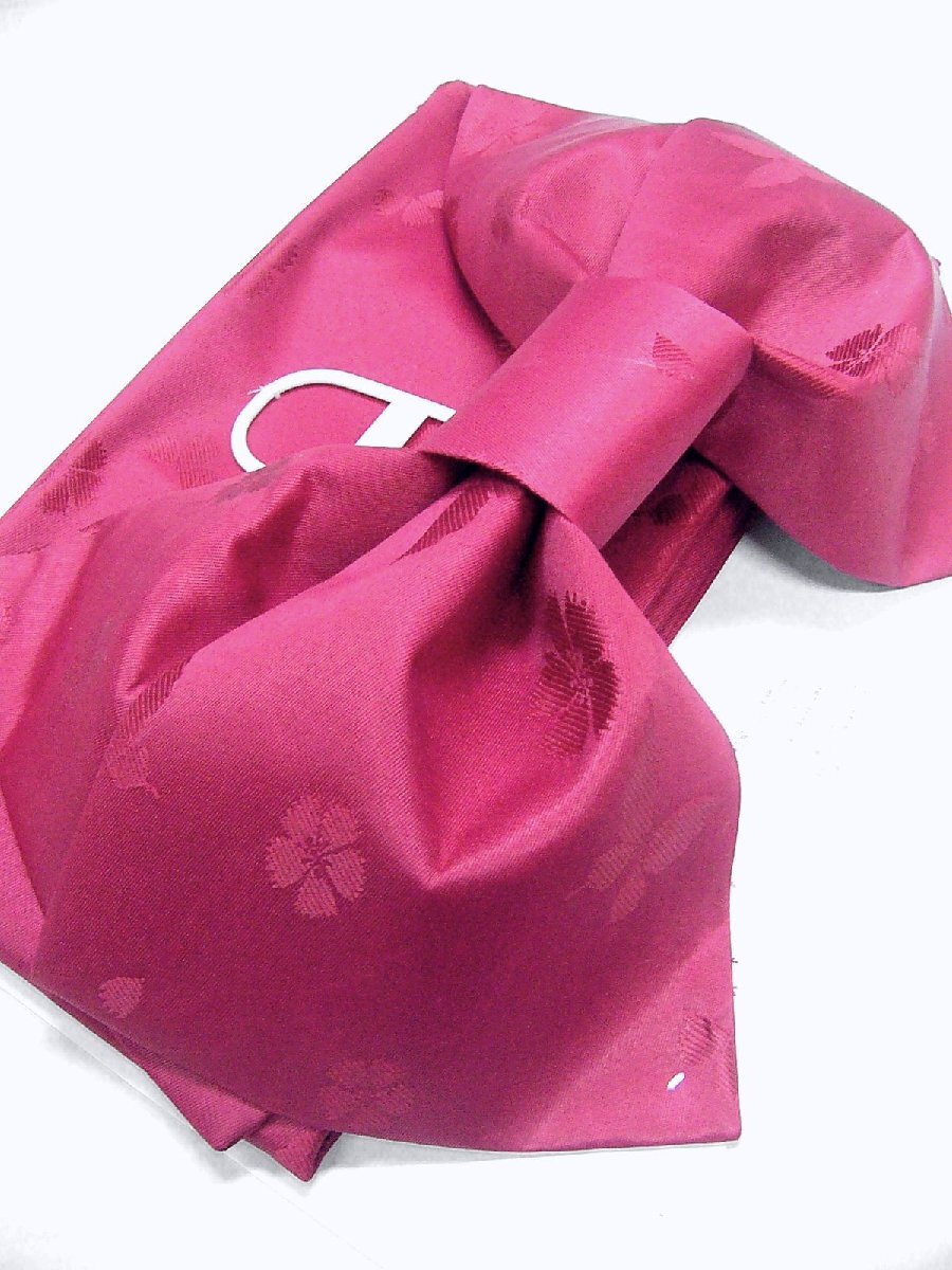 少しくすんだ赤色系の無地で蝶や花の地紋の生地になります。