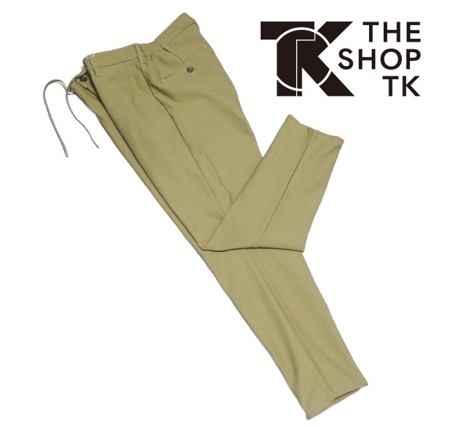 ◎ストリートファッションで若者に絶大な人気のブランド「THE SHOP TK」(タケオキクチ)のロングパンツの登場です!定番素材の360度ストレッチジャージ素材をベースに、伸縮性に富み、シワもつきにくく、程よい光沢感が良質感あるボトムスです♪カルゼ調の表面感のある素材と上品でよりきれい目に見える素材が採用され、太もも部分はややゆとりがあり、裾に向かってすっきりするテーパードデザインです!ウエストシャーリングで穿き心地にこだわったイージーパンツです♪!!