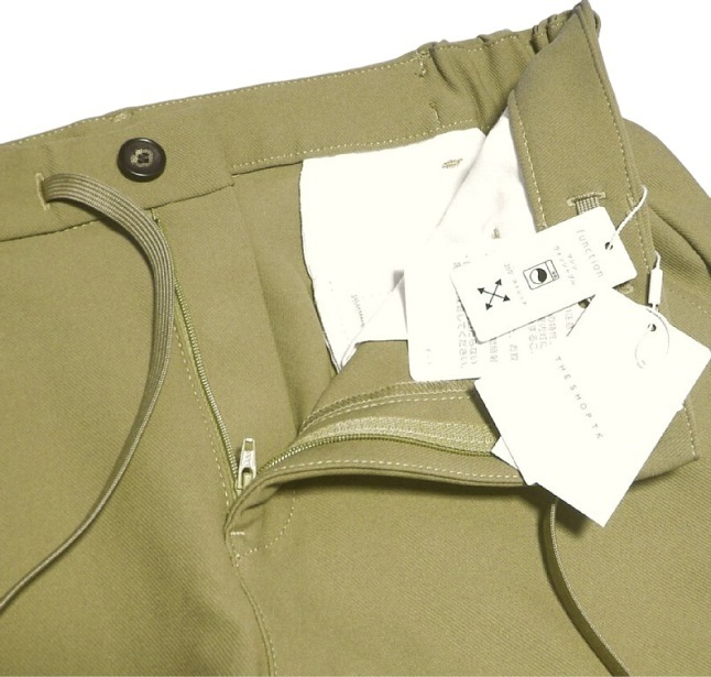 ◎フロント開閉はジップ仕様でボタンは1つ、表・裏面とも左右含めてポケットが計4つあります。ウエストは脇ゴム入りで2WAYドローコード(内側でも、外側でも使用可)。テーパードシルエットとなります。