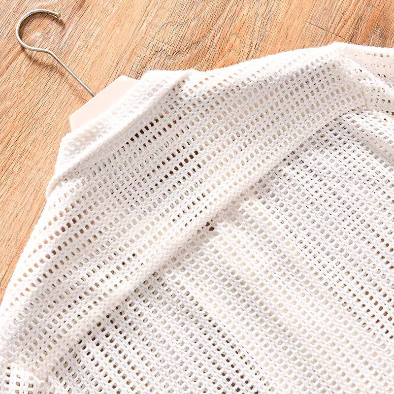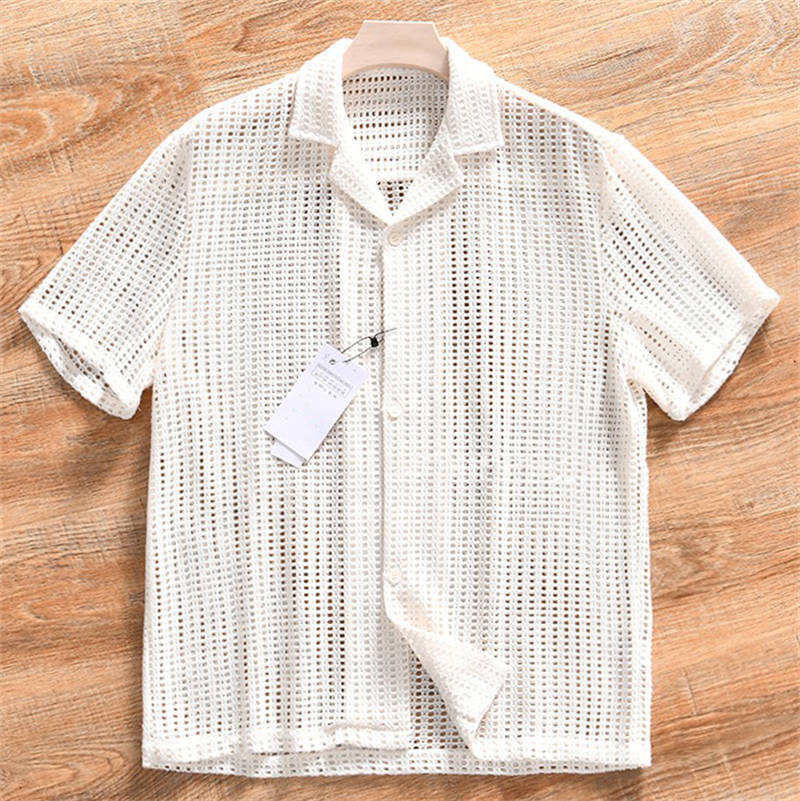 W0796-XLベージュ 新品 透かし編みニット レーヨン混 半袖シャツ サマーニット メンズ 軽量 通気 吸汗速乾 涼しい 薄手 夏 オープンカラー 透かしシャツ 盛夏