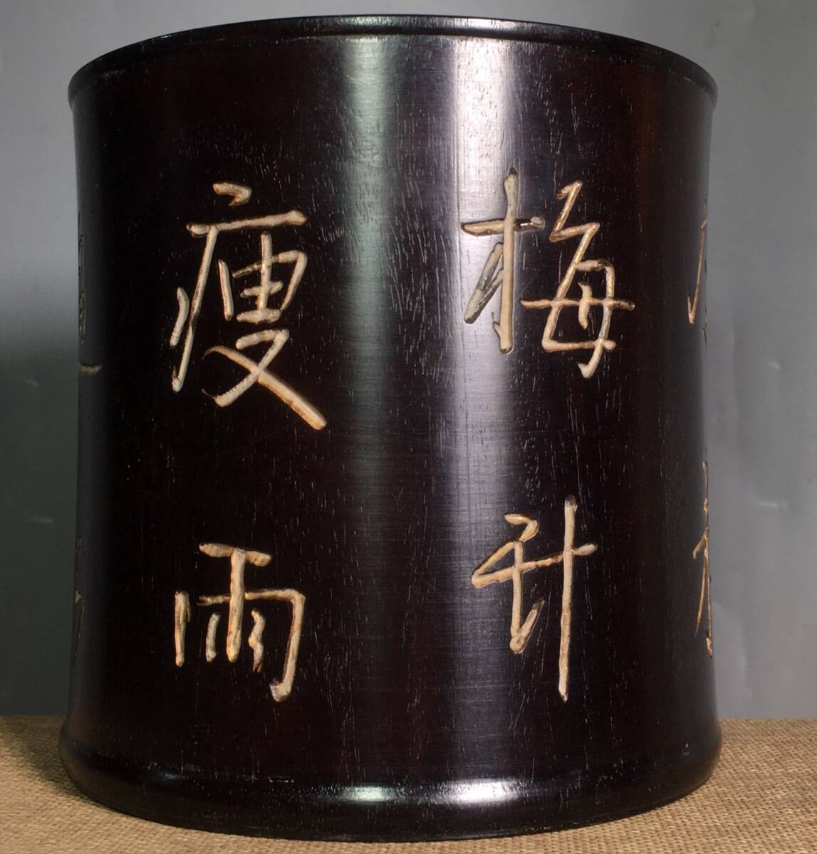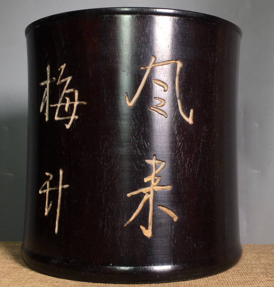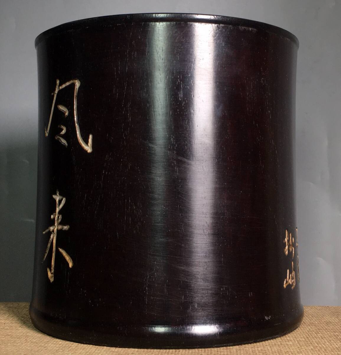 *珍品旧蔵* 清 紫檀木 彫刻 筆筒 置物 滿金星牛毛紋清晰 木製 極細工 中国古玩 骨董品 古美味 H48