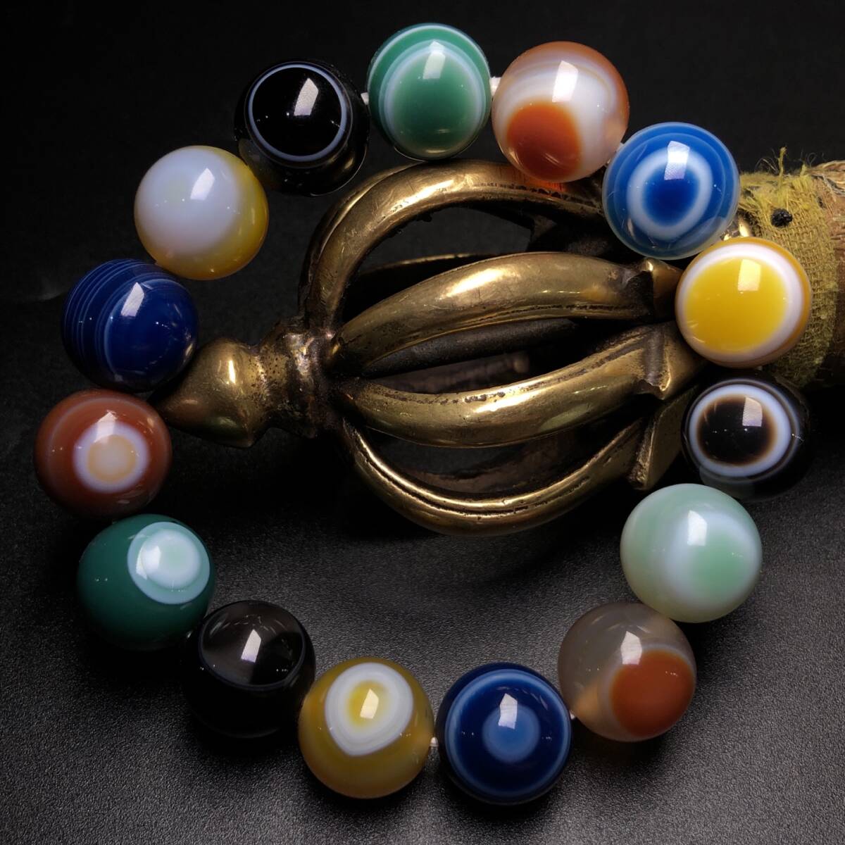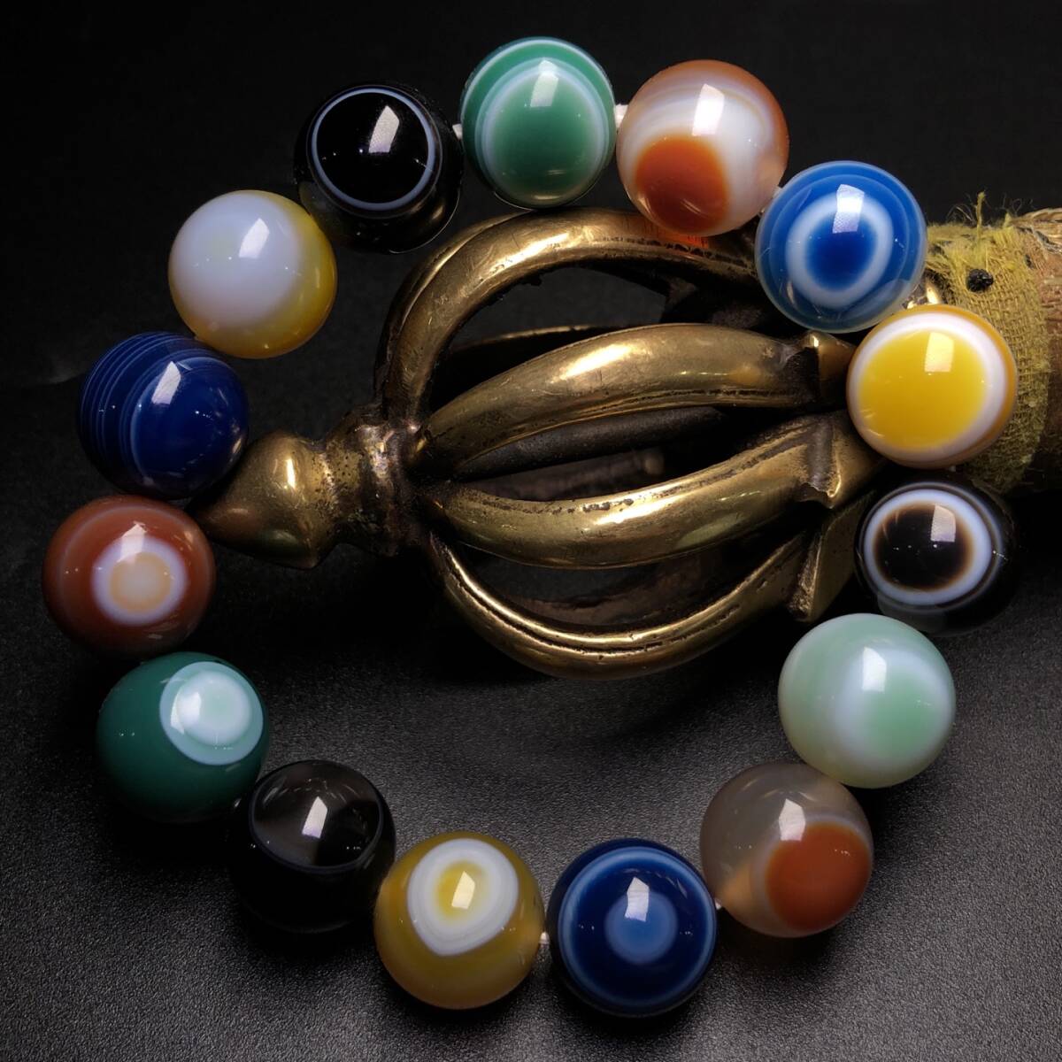 西蔵天珠 古瑪瑙彫 天眼天珠手鏈 仏珠 数珠 念珠 奉納 腕輪 盒有 極細工 古賞物 古美味 東洋彫刻 時代物 骨董 中国古美術