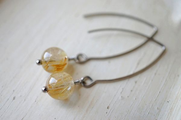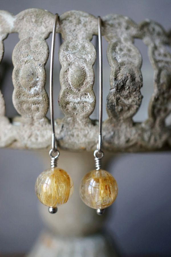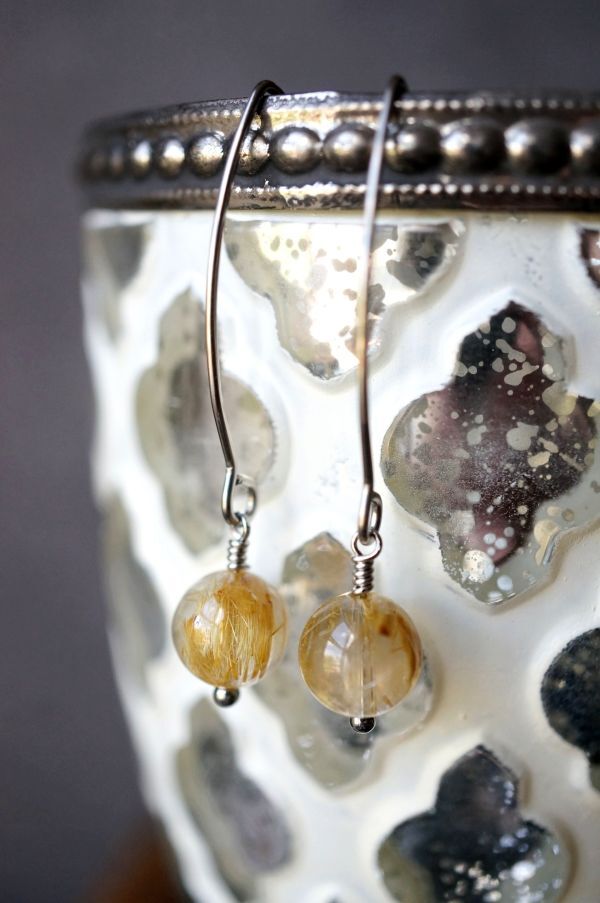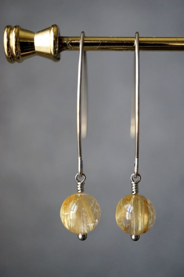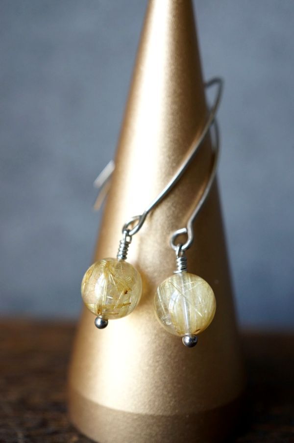 サージカルステンレス ピアス 494 ルチルクォーツ 金属アレルギー対応金具使用 写真の現品お届けです