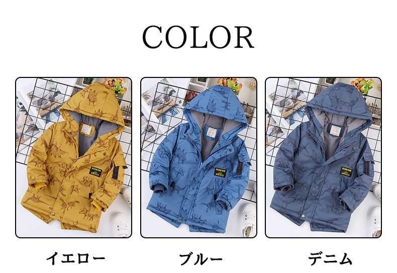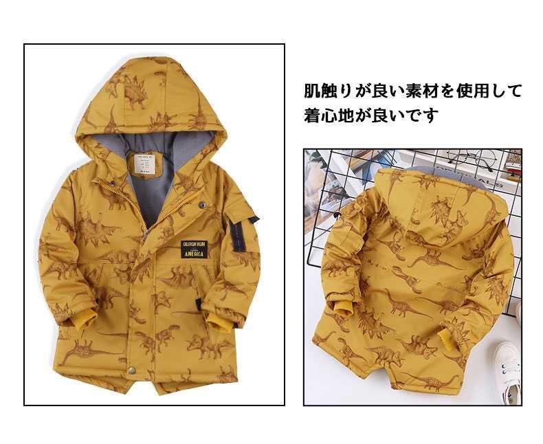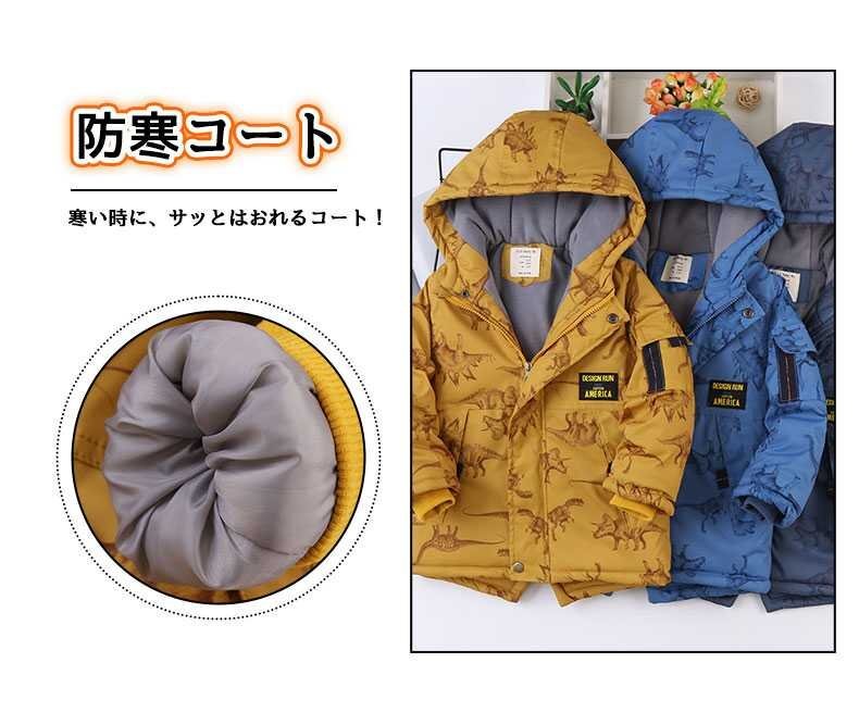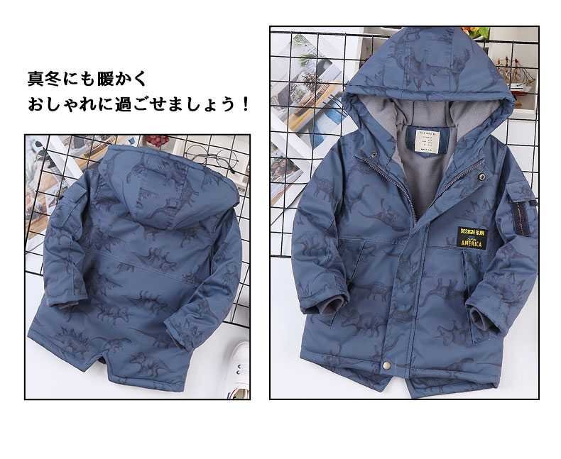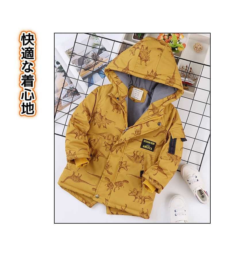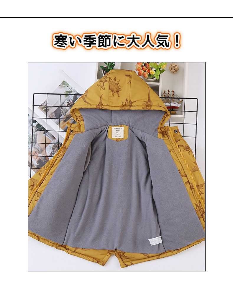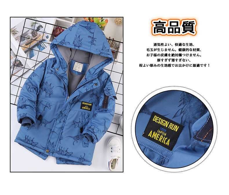 キッズジャケット ダウンコート女の子 男の子 裏ボアジャケットベビー 恐竜柄かわいい フード付き 赤ちゃん 長袖☆3色/110~160選択/1点