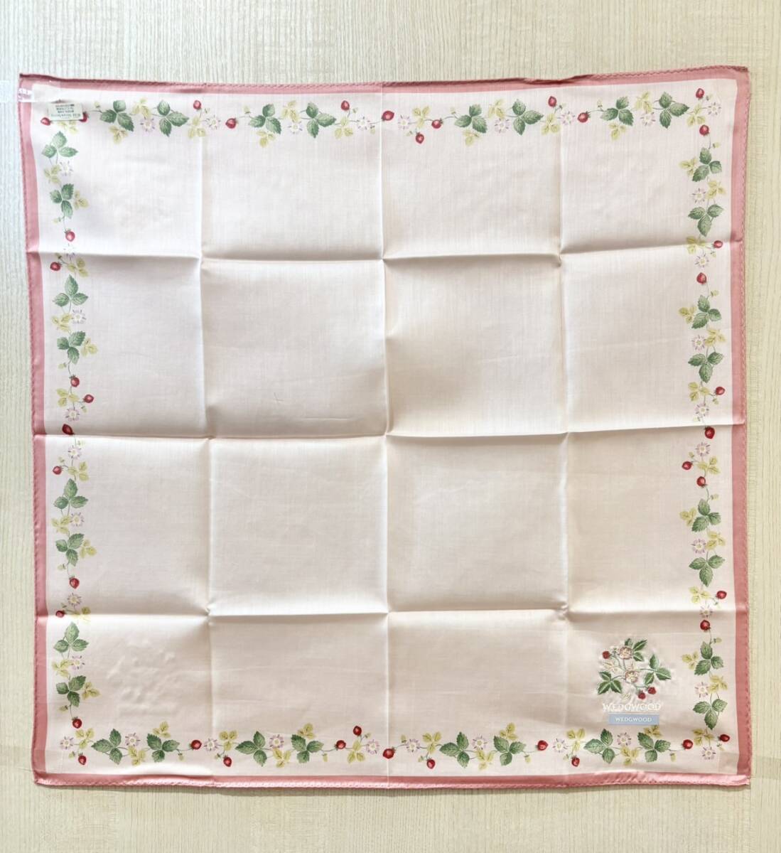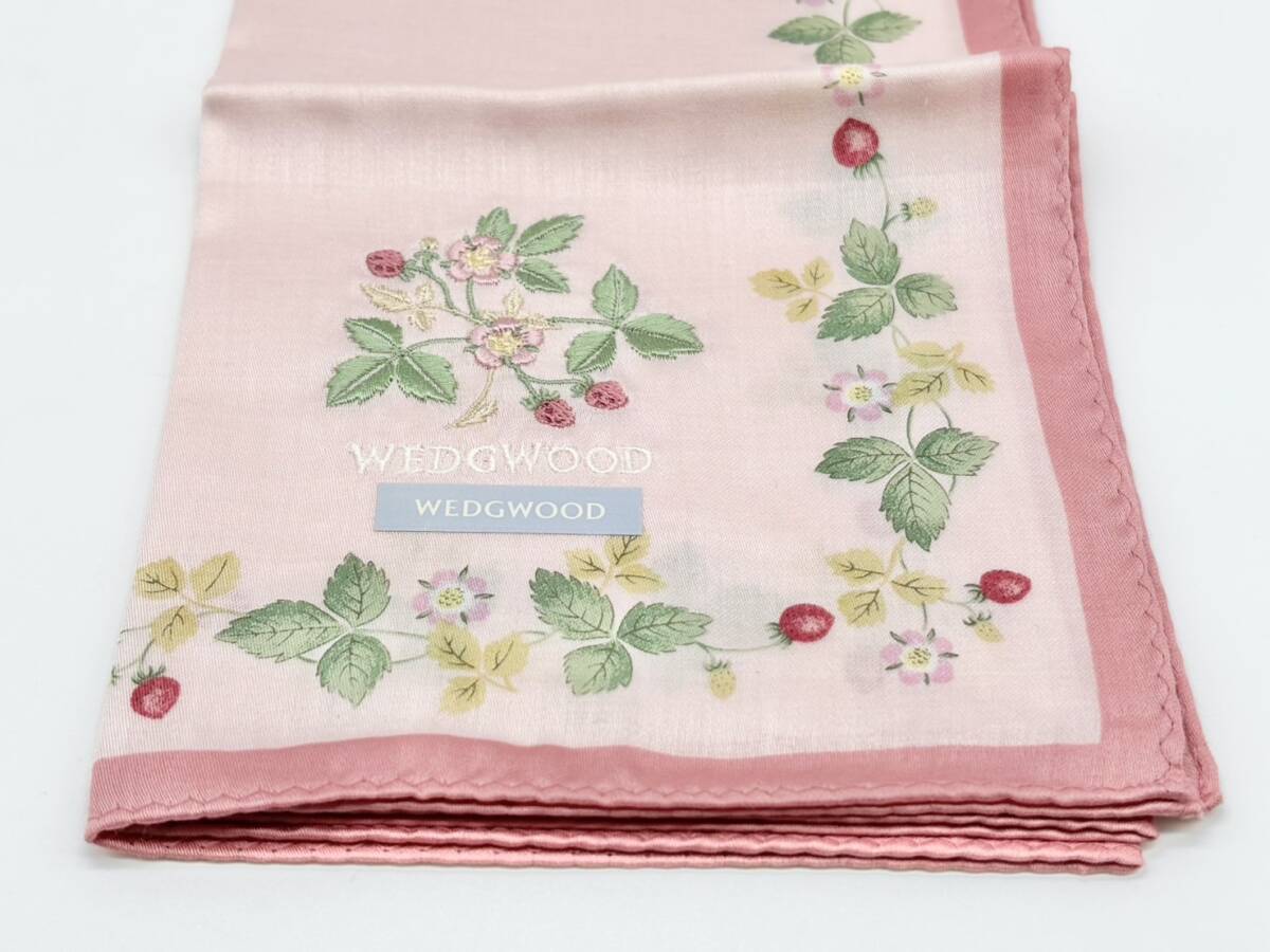 【未使用】ウェッジウッド ハンカチ WEDGWOOD ワイルドストロベリー WildStrawberry 綿100% 日本製 ピンク いちご 現状品