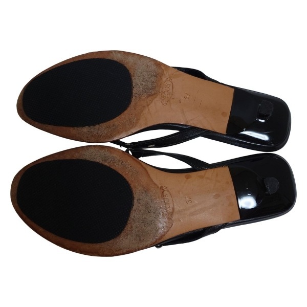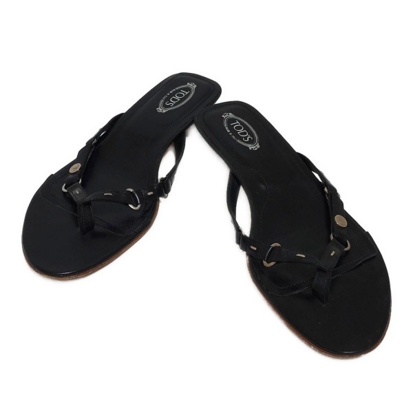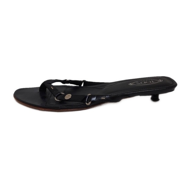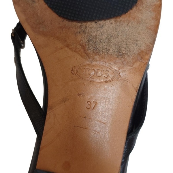 トッズ TOD'S サンダル 37 - レザー 黒 レディース アウトソール張替済 靴