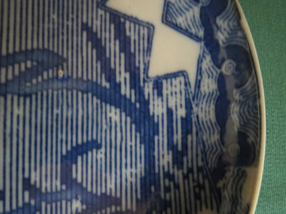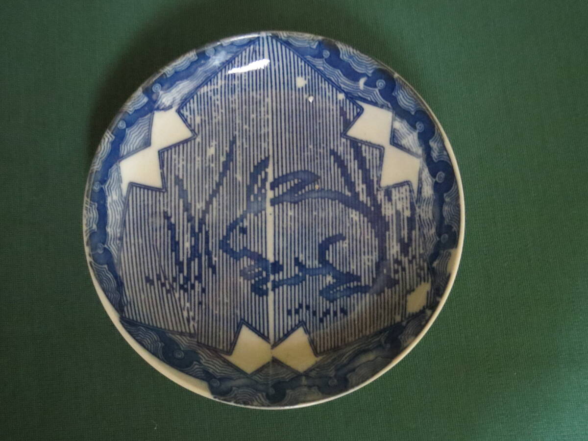 印版皿 影絵 とくさ兎 藍 うさぎ 明治後期