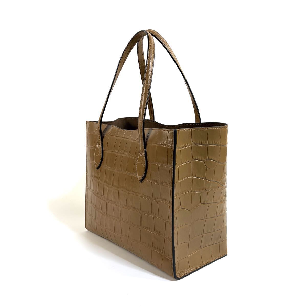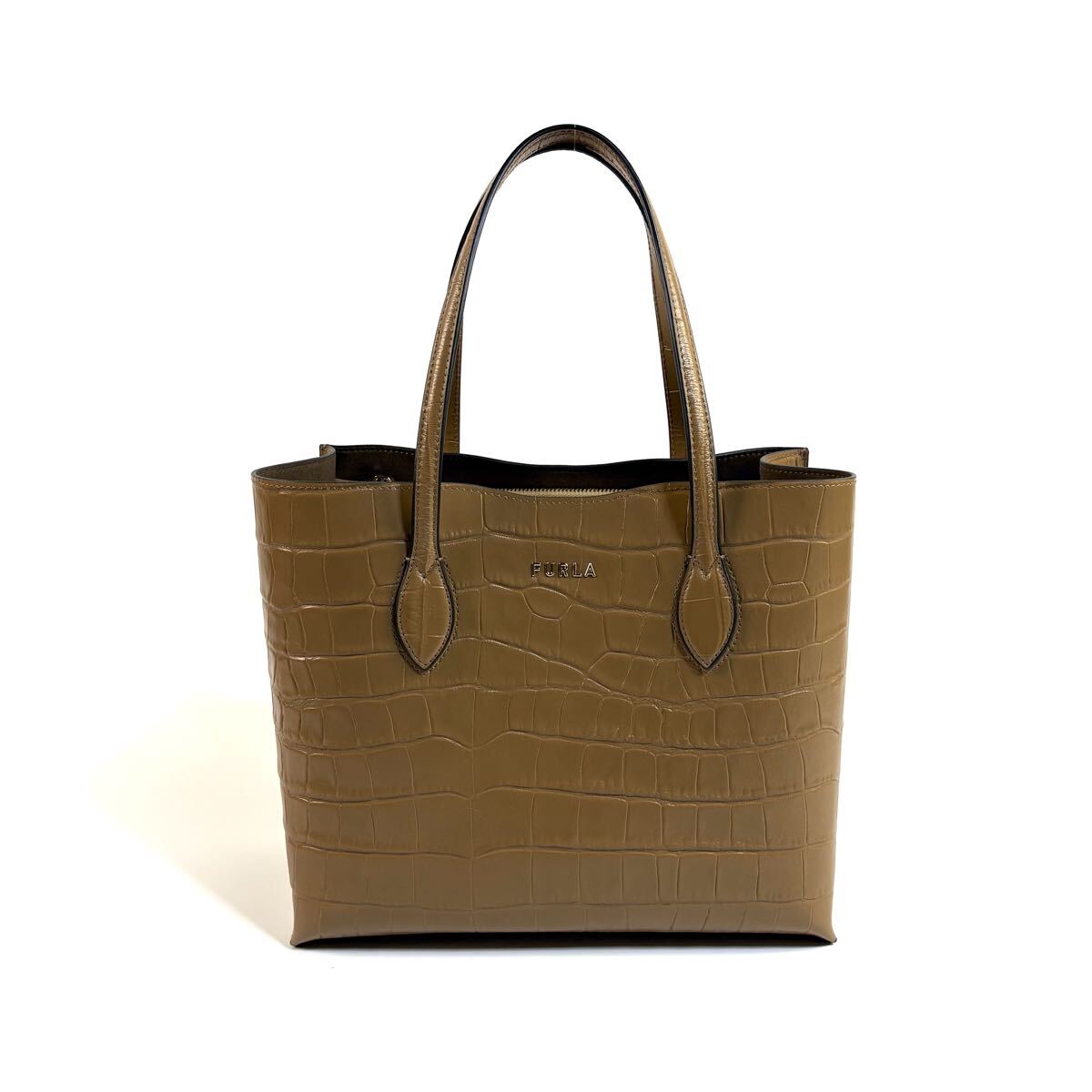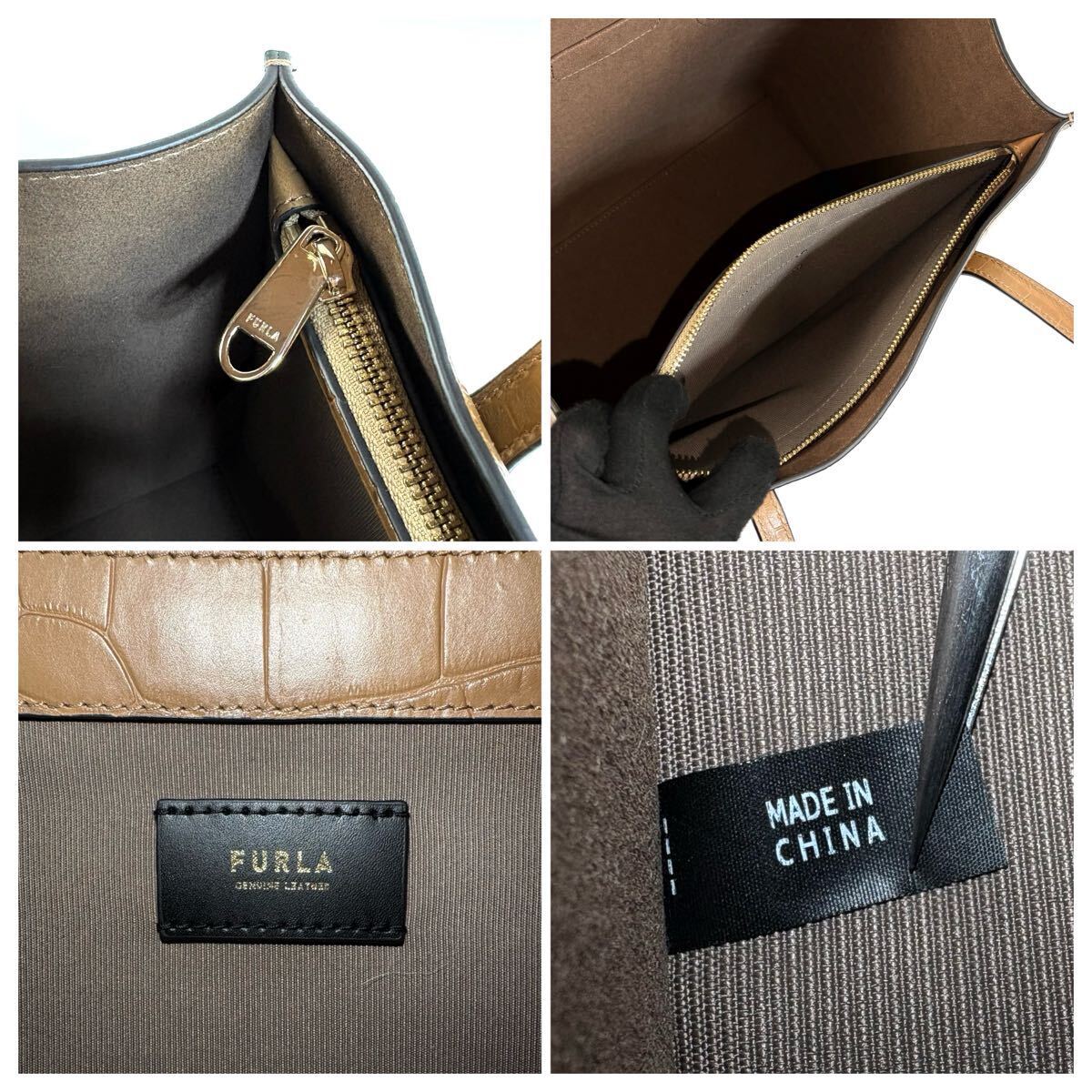 【極美品】FURLA フルラ レザー ハンドバッグ トートバッグ クロコ型押し ブラウン キャメル 保存袋付き |