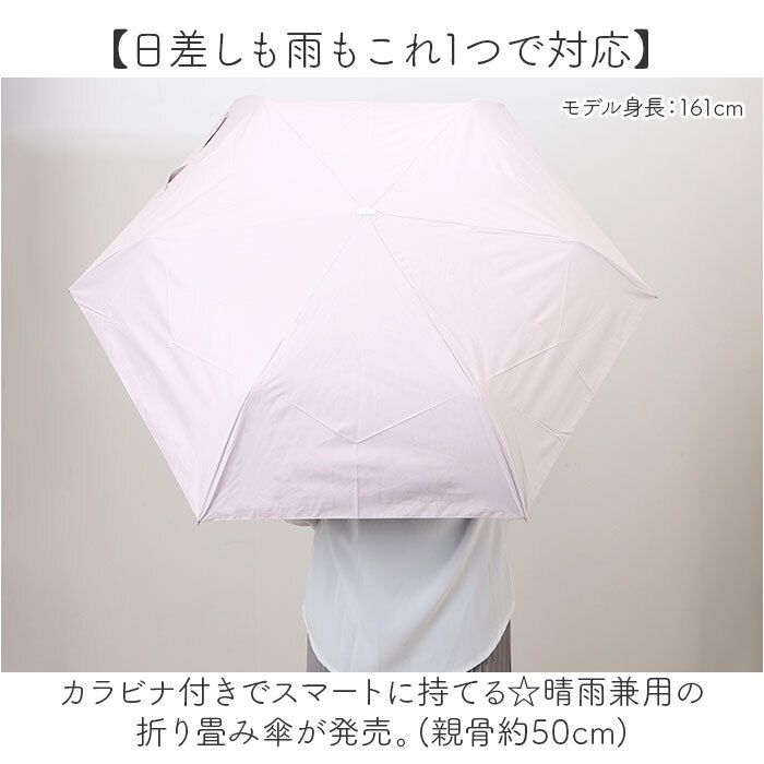 商品説明 | ・・【日差しも雨もこれ1つで対応】 ・カラビナ付きでスマートに持てる☆晴雨兼用の折り畳み傘が発売。(親骨約50cm) ・【便利なカラビナ手元】 ・リュックやバッグなどにワンタッチで引っ掛けて持ち運べ、握りやすいカラビナ手元を採用。 ・【晴れの日の紫外線カットに】 ・黒コーティングを施し、紫外線を99%以上カット!UPF50+効果で日焼け防止に◎ ・【日差しをカットできる遮光効果】 ・日差しも99%以上カットできるので熱射病対策にもオススメ♪真夏の強い日差しからも守る! ・【雨の日も活躍】 ・はっ水機能もあり晴れの日はもちろん、急な雨にも対応可能。 ・【風が強い日も安心】 ・グラスファイバーの親骨を使用し、強い風を受けてもしなやかに曲がり壊れにくい。 ・【スムーズかつ安全に開閉】 ・開閉時に指先や爪を挟むのを防止するネイルカバー付きで、簡単に開閉できる手開きタイプ。 ・【さっとまとめられる】 ・留めバンドは傘生地をまとめやすい面ファスナーテープ式。太めの作り見つけやすいのも◎ ・【かさばらないフラットタイプ】 ・持ち手やフックに下げるだけでなくカバンの中に入れてもかさばりにくいフラットタイプ。 ・【どなたでも使いやすい】 ・ワンカラーの傘生地にホワイトの持ち手を組み合わせたバイカラーデザインで年代問わず使える ・【収納袋付き】 ・収納や保管に便利な傘生地と同色の収納袋付き。スナップボタンを外して出し入れスムーズ。 |
