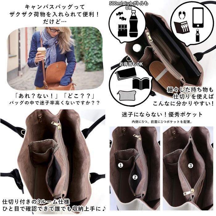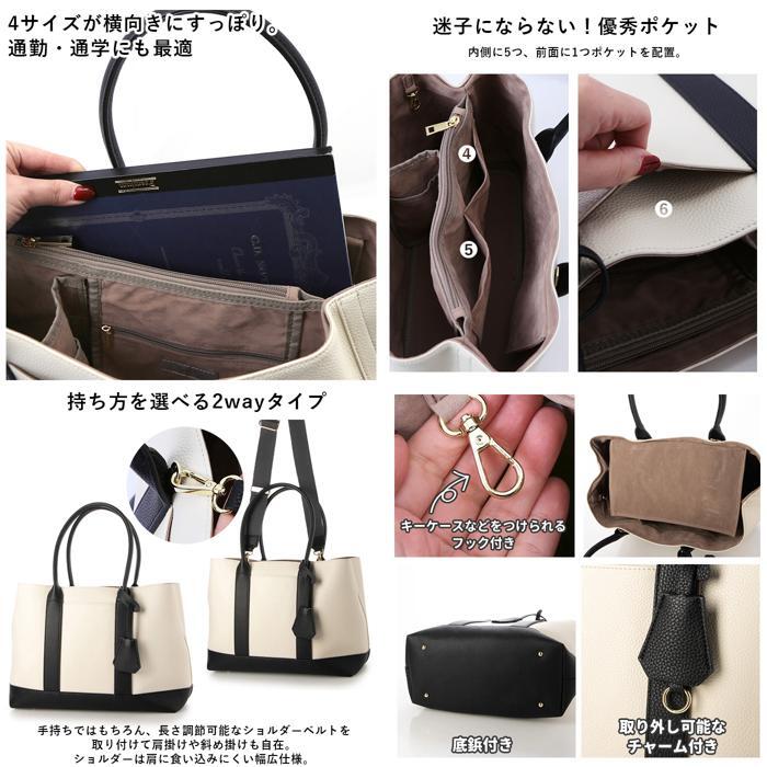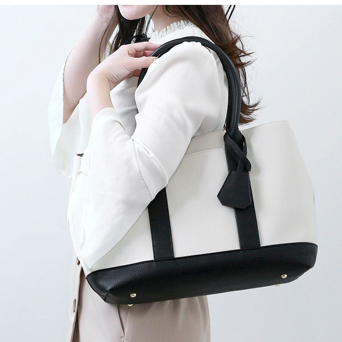 | 商品説明 | ・・オン・オフ問わず大活躍!cache cache(カシュカシュ)から、たっぷり収納できて整理整頓がラクラク!ショルダー付きパーテーショントートLサイズが新登場。 ・【落ち着きのある仕上がり】 ・シボ感のあるフェイクレザーを使用。シーンを選ばず使えて、カジュアルにもキレイめにもマッチ☆ ・【安定感をキープ】 ・小物を収納しやすく安定感のあるスクエアフォルム。荷物を入れていない状態でも自立。 ・【持ち方を選べる2wayタイプ】 ・手持ちではもちろん、長さ調節可能なショルダーベルトを取り付けて肩掛けや斜め掛けも自在。ショルダーは肩に食い込みにくい幅広仕様。 ・【オープン開口】 ・開口部はガバっと開くオープンタイプ。中身が見やすく、取り出しもスムーズ。内側に目隠し布付き。 ・【仕切り付きの3ルーム仕様】 ・内側は3ルームに分かれており、急いでいる時も中身がひと目で確認できて誰でも収納上手に♪内生地は小物を傷つけにくい、しっとりとした生地感。(※仕切りの底は縫い付けられておりません。) ・【A4サイズ対応の大ルーム】 ・A4サイズのファイルが横向きにすっぽり。通勤・通学にも最適。 ・【使い勝手の良い中ルーム】 ・ポーチやサニタリーグッズ、お弁当箱などをIN。 ・【ペットボトルが収納できる小ルーム】 ・ペットボトルや折りたたみ傘が倒れることなく、安定した状態で持ち運べちゃう! ・【サッと取り出せるポケット】 ・内側に5つ、前面に1つポケットを配置。小物が迷子になりにくく、必要な時にすぐに取り出しOK。 ・【直置きも安心】 ・底面四隅には、傷や汚れが付きにくい底鋲付き。 ・【お気に入りをチョイス】 ・マットな質感に仕上げたトートバッグ。単色カラーやミックスカラーからお好みで選んで、お出かけのお供に♪取り外し可能なチャーム付き。 ・【ポケット仕様】 ・内側:オープンポケット×3、ファスナーポケット×2 ・前面:オープンポケット×1 |
