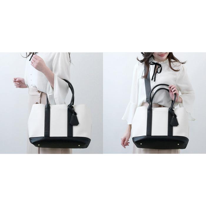| サイズ | [縦]約25cm/[横(底部)]約33cm/[マチ]約14cm [持ち手]約40cm/[ショルダー]約70cm~約112cm(調節可能) ※サイズは当店計測の実寸サイズです。実際の商品ならびにメーカー表記サイズとは多少の誤差が生じる場合がございます。あらかじめご了承ください。 |