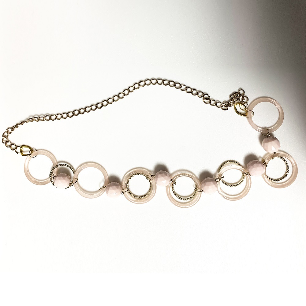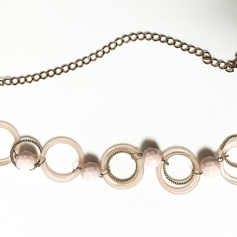 未使用 サークル ボリューム ロング ネックレス ピンク 軽量