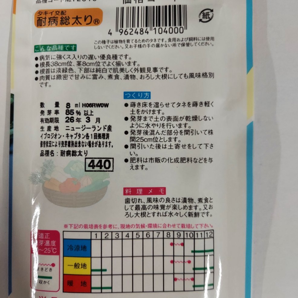 送料無料☆即決!タキイ交配 ス入りが遅い優良種 肉質緻密で甘く美味しい 60日型 だいこん 耐病総太り 3袋セット ◇郵便発送