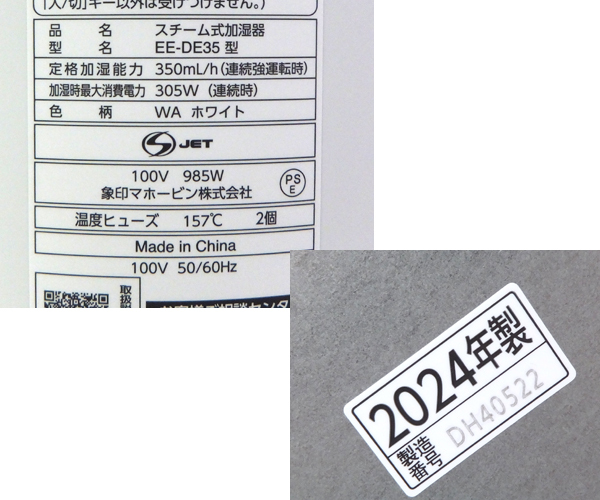 象印 スチーム式加湿器 フィルター不要 3.0Lタンク 2024年製 EE-DE35 ZOJIRUSHI 札幌市 屯田店