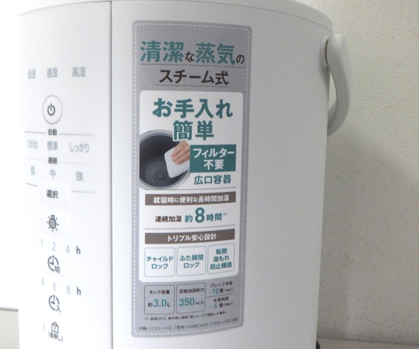 加湿時間(h):強連続/約8時間 中連続/約16時間 弱連続/約32時間