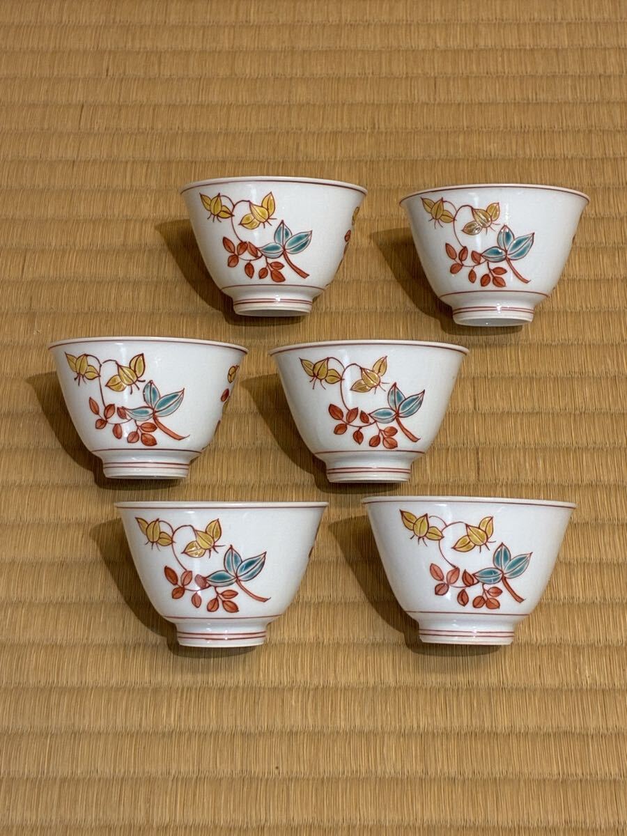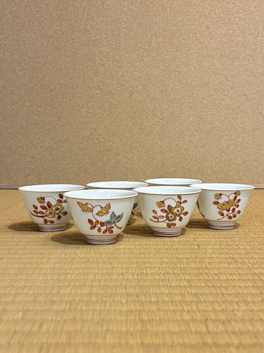 北村和善さんの、色絵花図煎茶碗6客セットです。