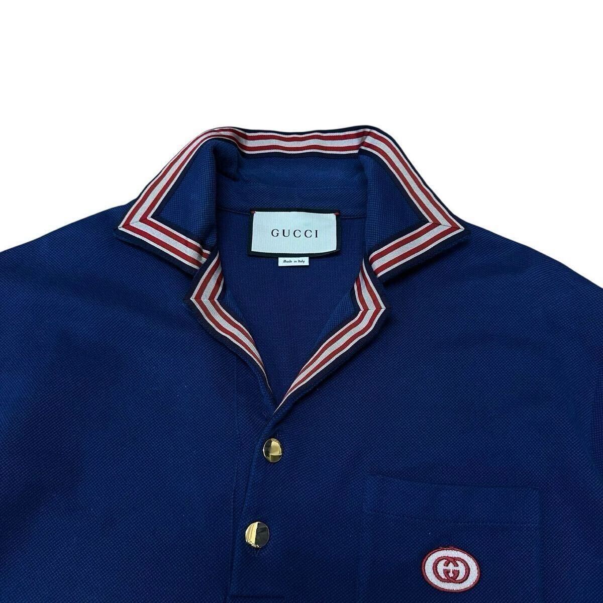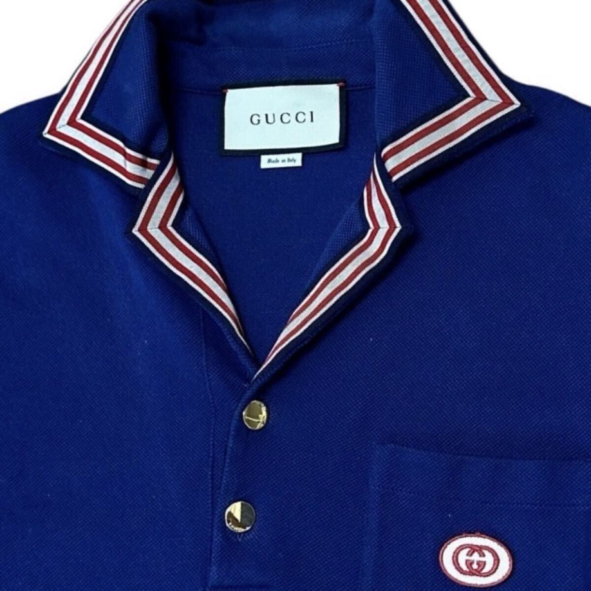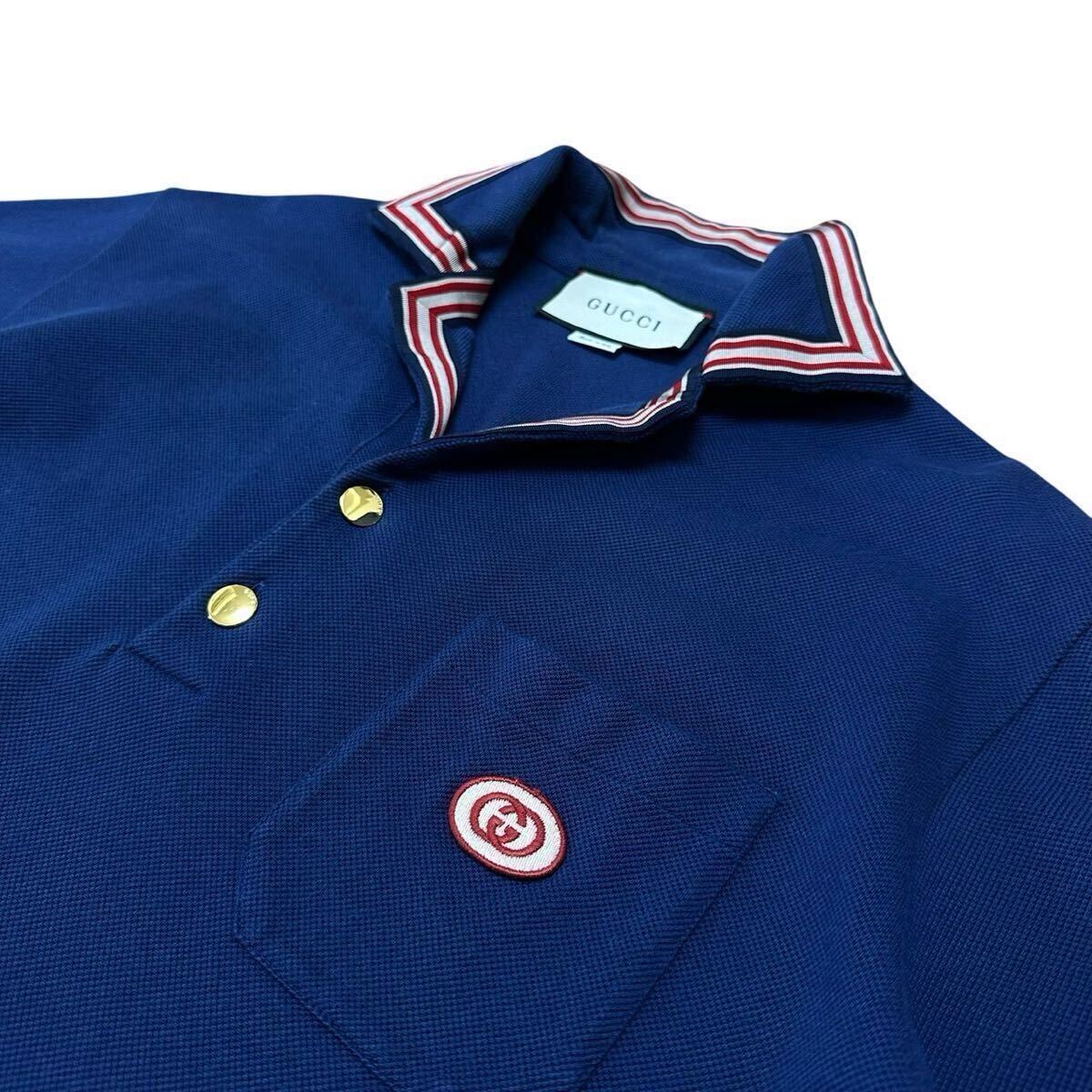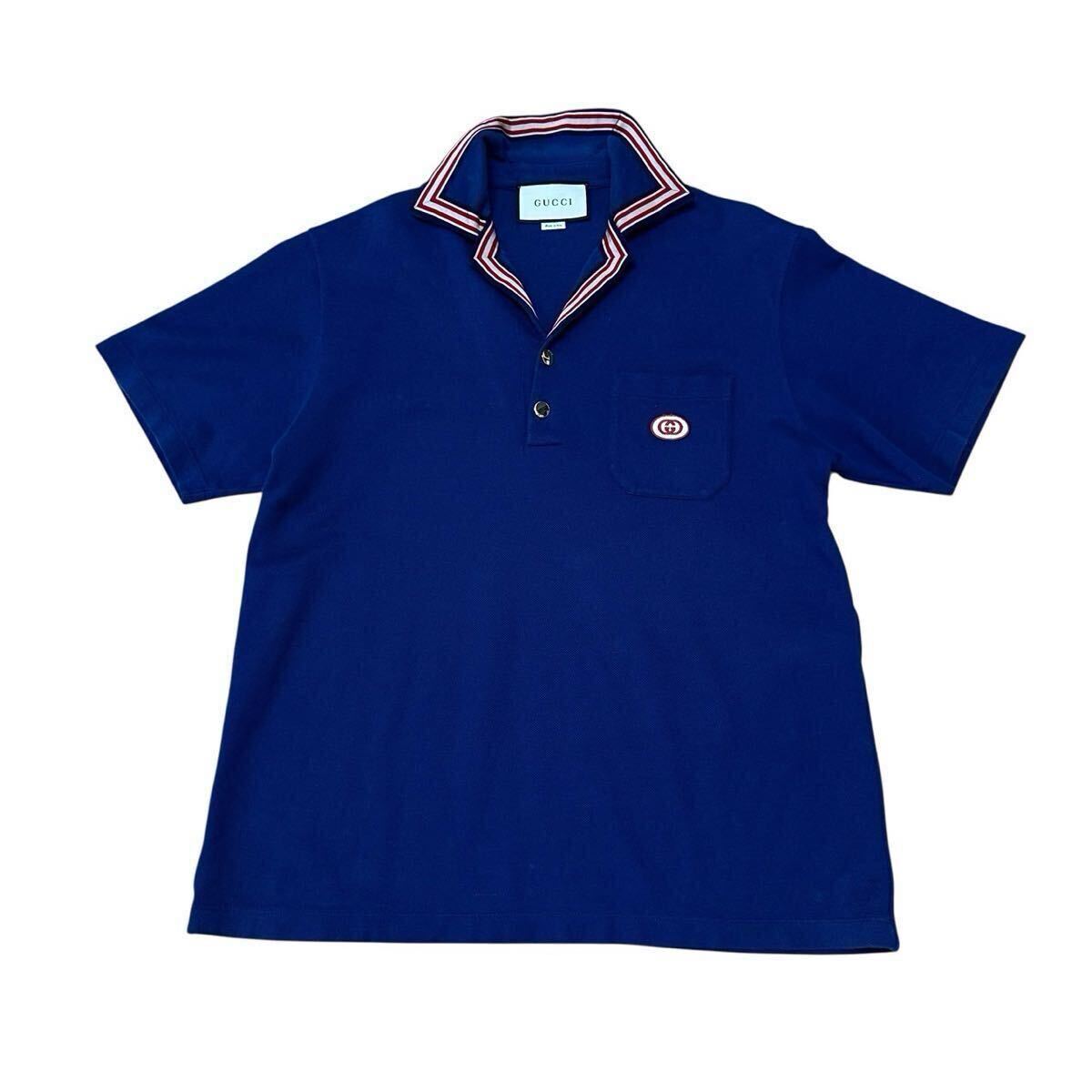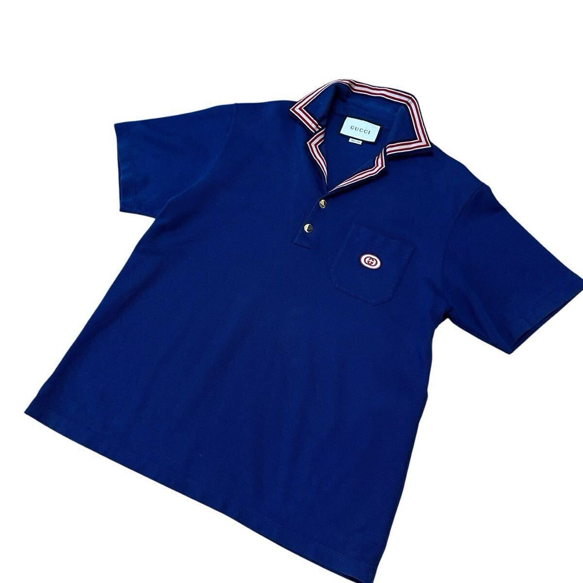 【本物保証】極美品◆ GUCCI グッチ ◆ GG Sticker Cotton インターロッキングG コットンピケ ポロシャツ トップス sizeM
