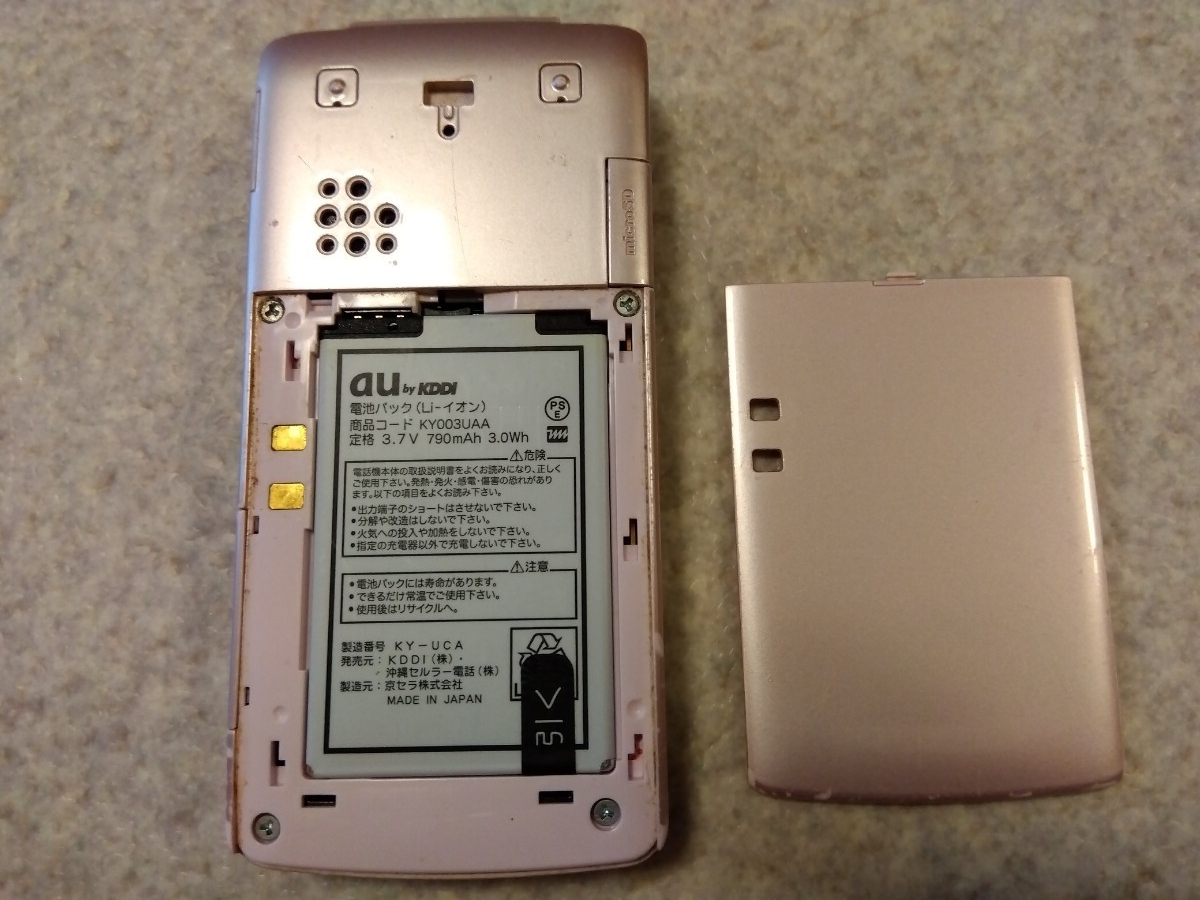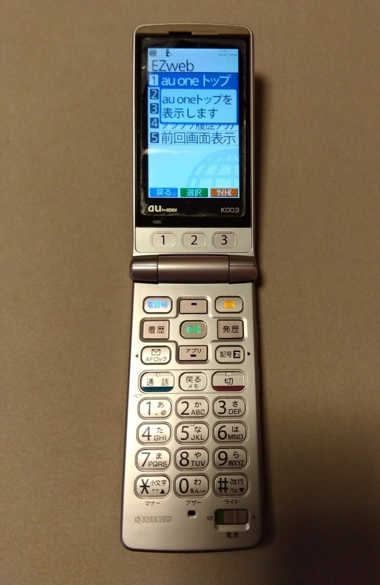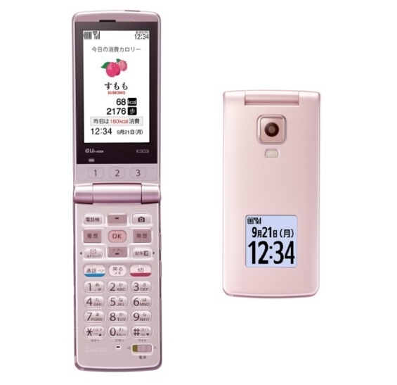 京セラ製のガラケーCDMA 1X WIN端末「簡単ケータイ K003亅(ピンク)です。