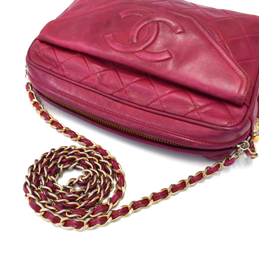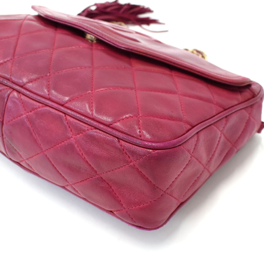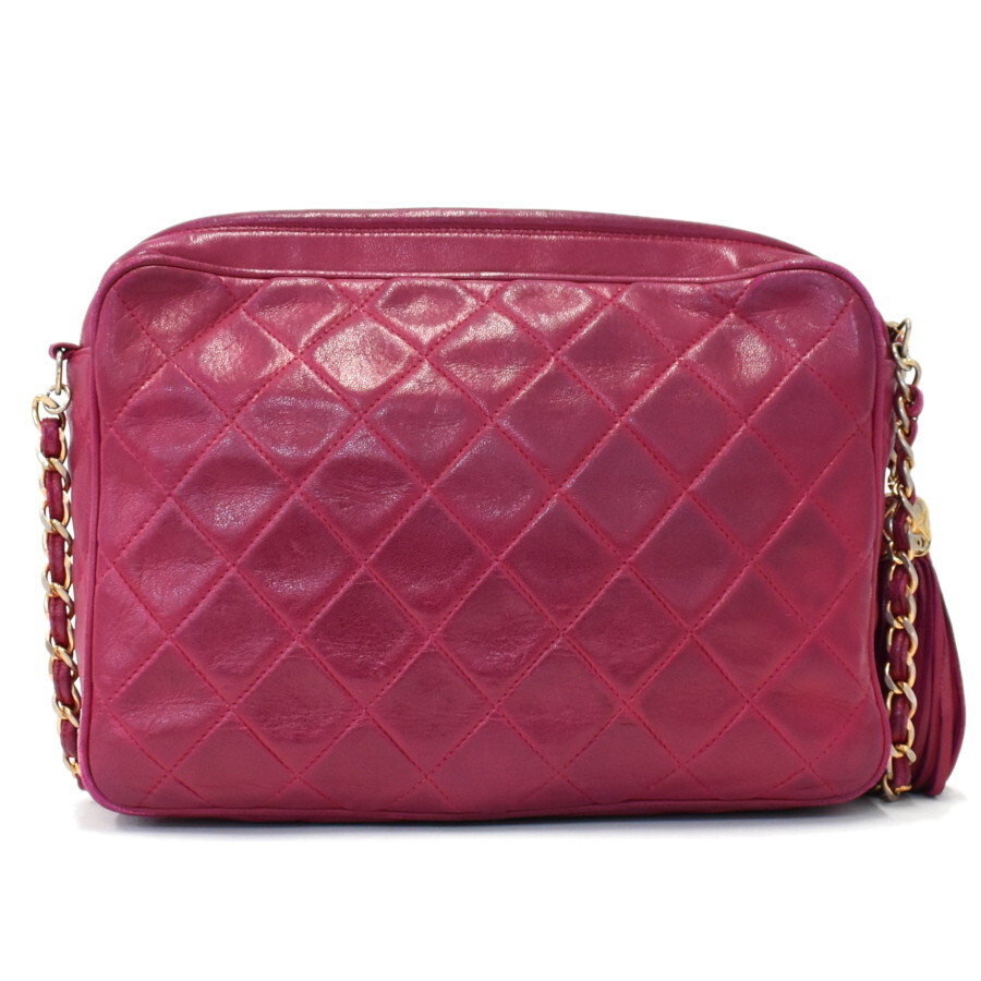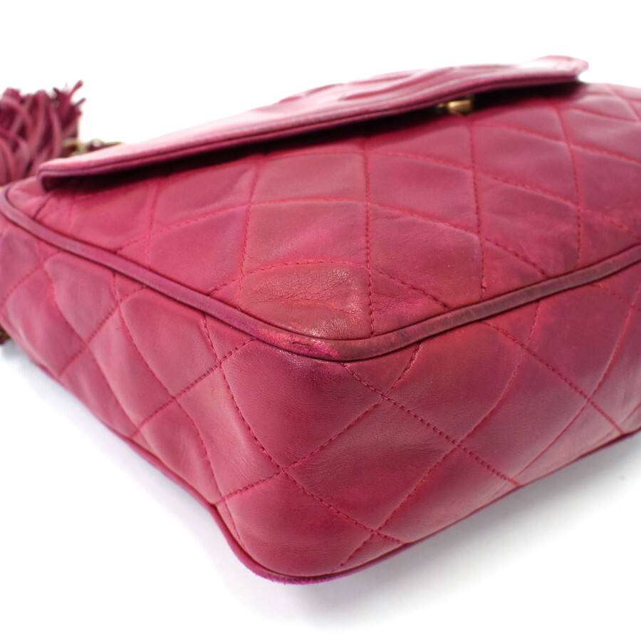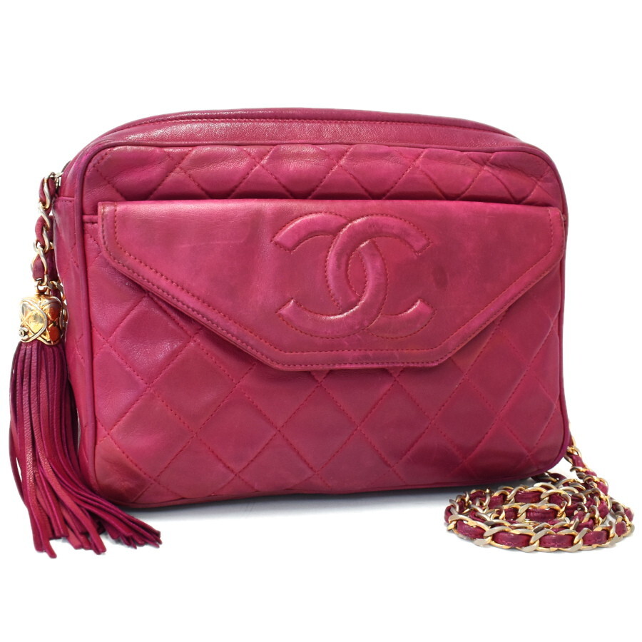 1円◎美品/CHANEL/シャネル/チェーンショルダーバッグ/タッセル/ココマーク/ラムスキン/レザー/ピンク系◎E.Col.zE-22